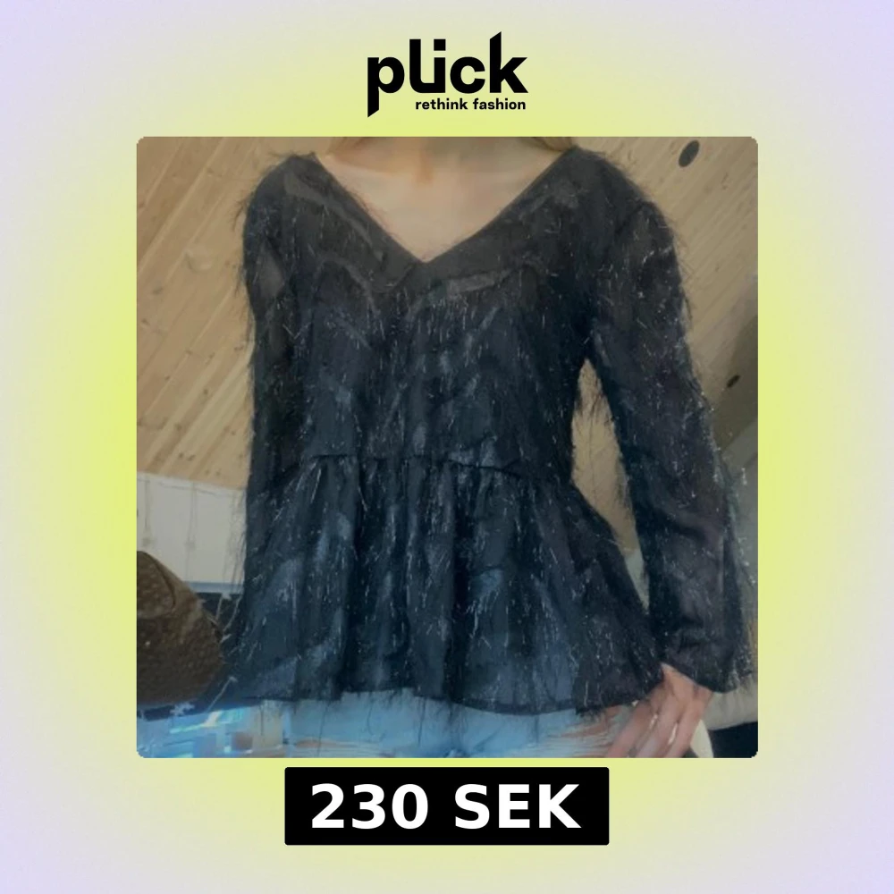 Säljer en svart blus med glittriga detaljer och v-ringning, bara använd en gång!💗