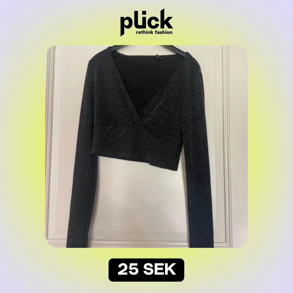 Croppad svart-glittrig långärmad topp ifrån new yorker. aldrig använd, Storlek m, men passar mig som har s och passar troligen större med då den är rätt stretchig