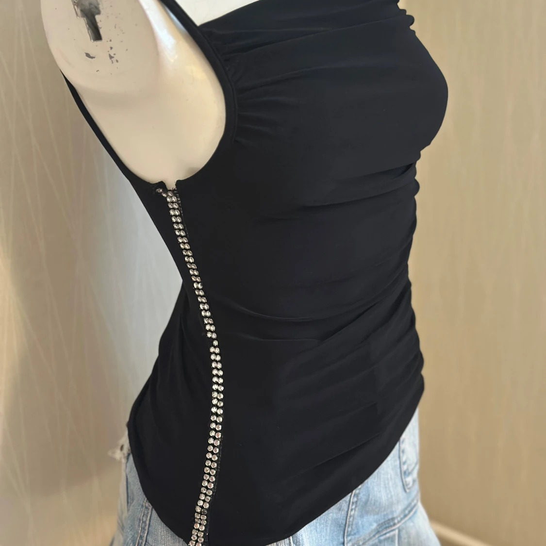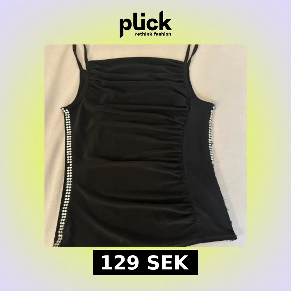French black tank top with rhinestones on the sides Missing some rhinestones Kolla gärna på mina andra mina andra annonser