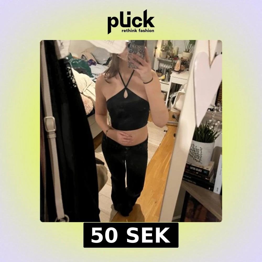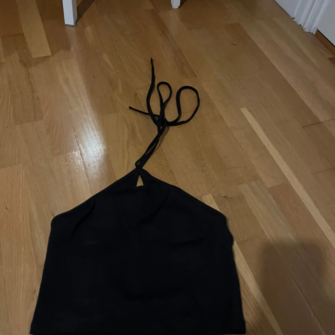 Snygg svart halterneck topp från Zara med knytband i nacken och en liten öppning framtill. Perfekt för en stilren look. Skriv vid frågor 💗