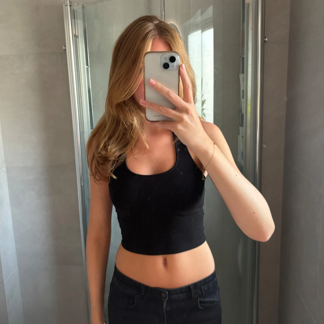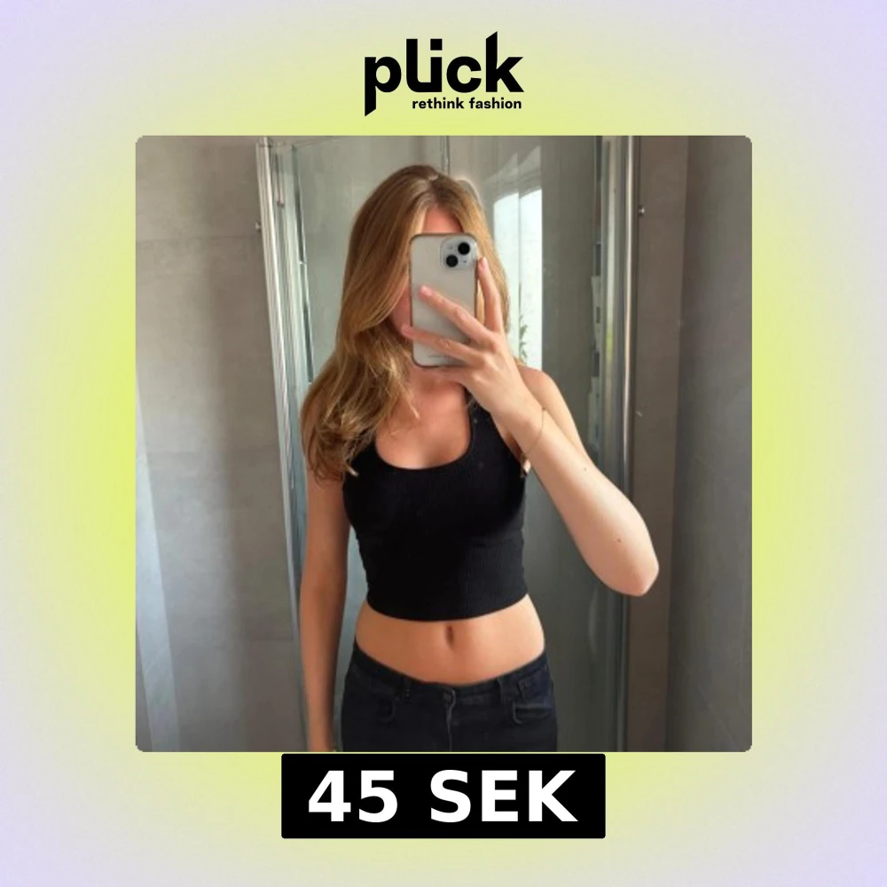 Svart croppad halternecktopp i ribbat material. Storlek S från HM💗✨