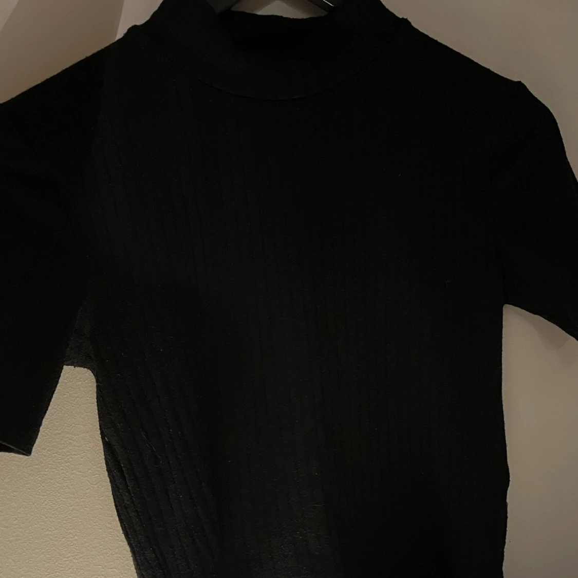 Svart polotopp med korta ärmar. Ribbad med mjukt och skönt material. Även lite tjockare material.