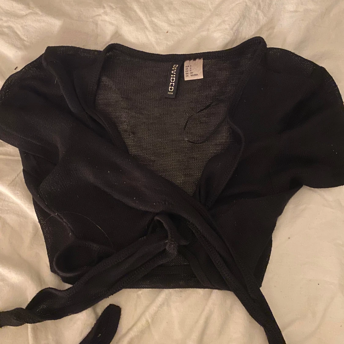 Säljer en väldigt söt svart knytblus. Den är croppad och har en knytning framtill vid bysten pris kan diskuteras och skriv för frågor!🥰