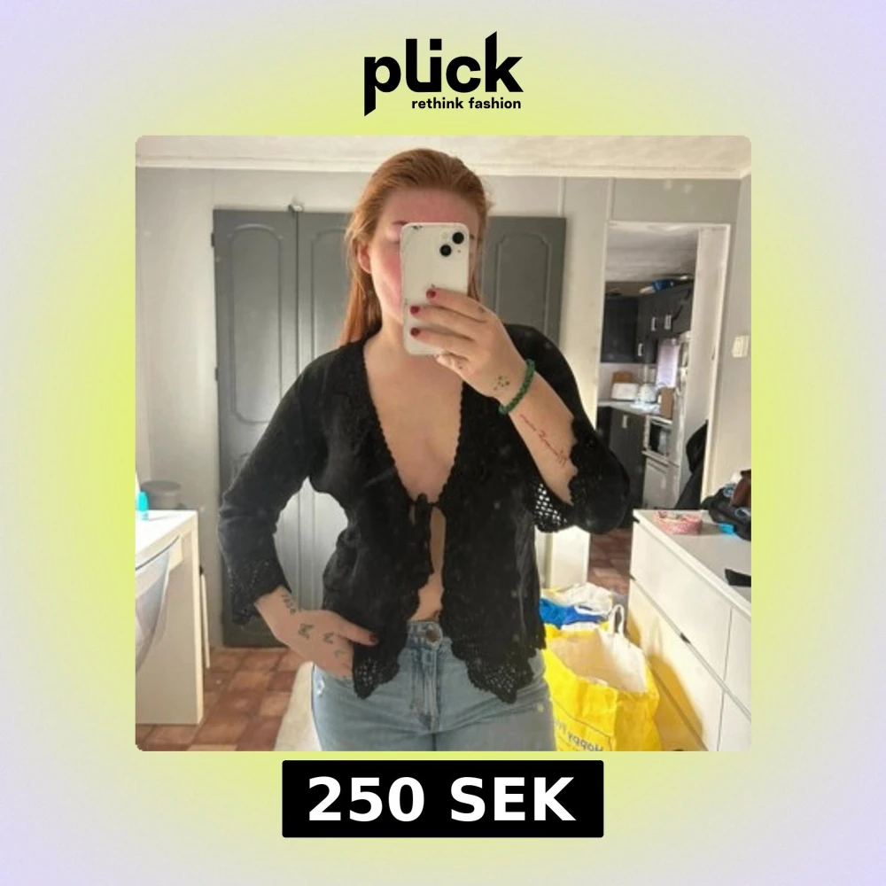 Säljer en svart kofta från Joseph A. med vackra spetsdetaljer och knyt framtill. Den är lite glittrig/skimrig. Storlek M