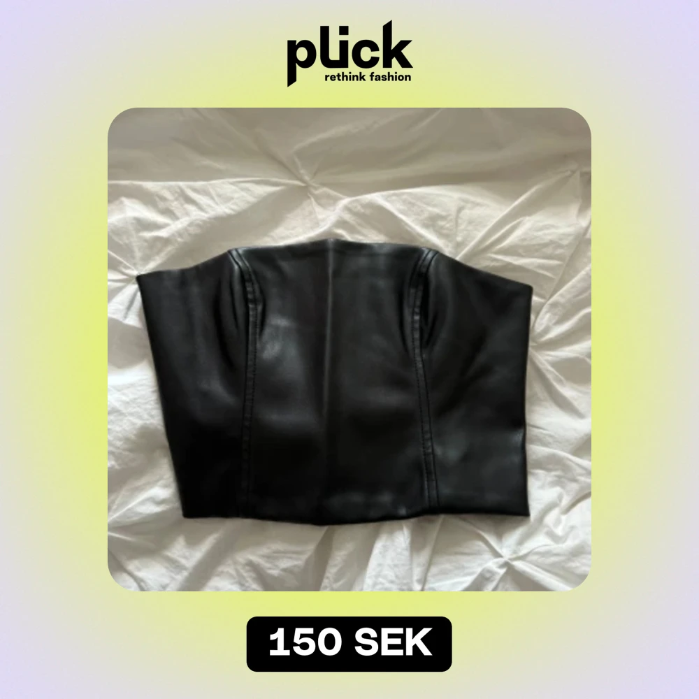 En stilren svart korsett från Gina Tricot i storlek XS. Korsetten har en dragkedja på baksidan och är tillverkad i ett syntetmaterial.