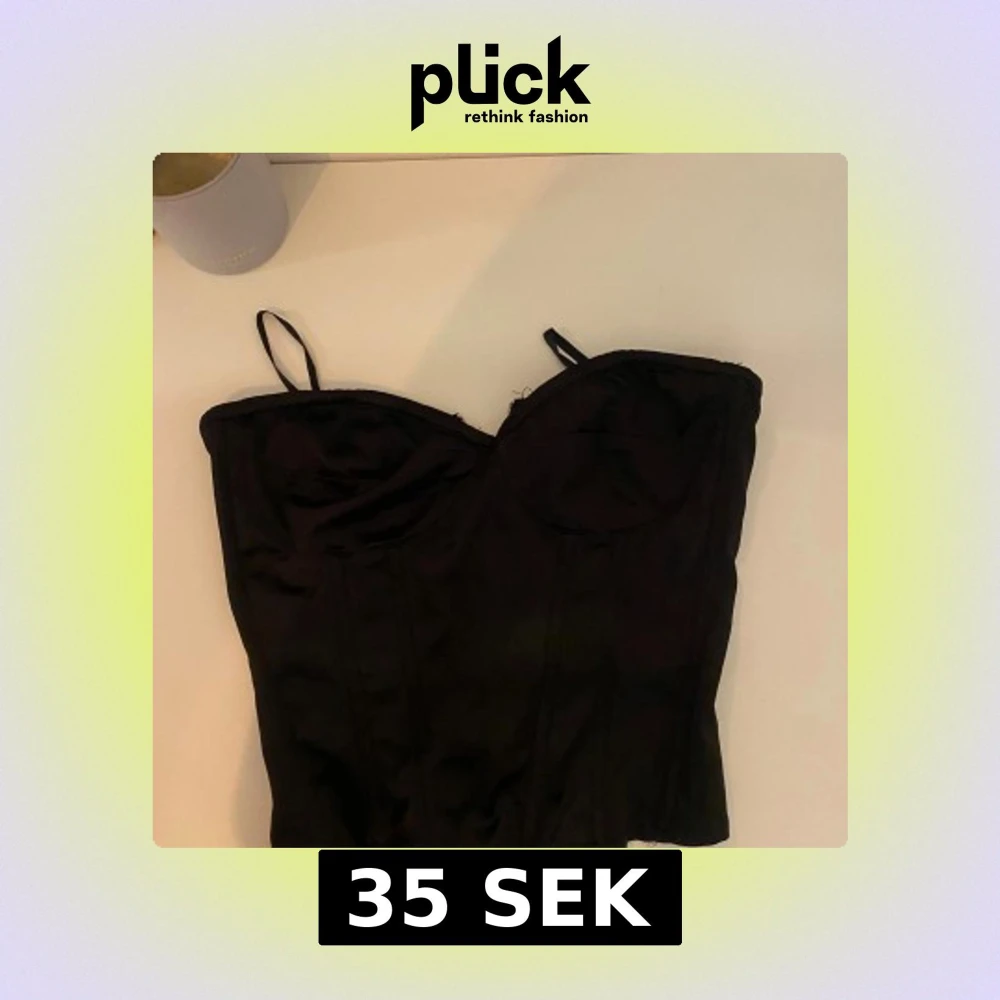Säljer en svart korsett med markerade kupor. Toppen har en figurnära passform och är sydd i ett slätt material som ger en snygg siluett. Perfekt för att lyfta vilken outfit som helst.