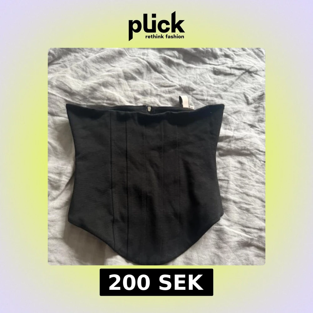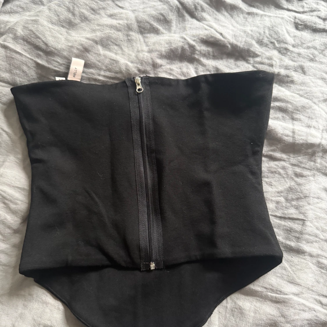 Snygg svart korsett med dragkedja i ryggen. Perfekt för att ge en stilren och elegant look. Passar bra till olika outfits och tillfällen.