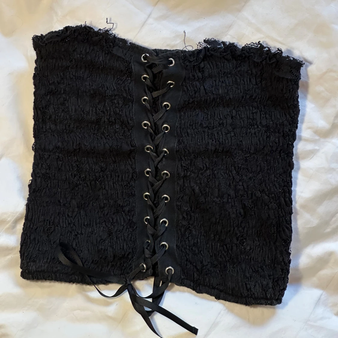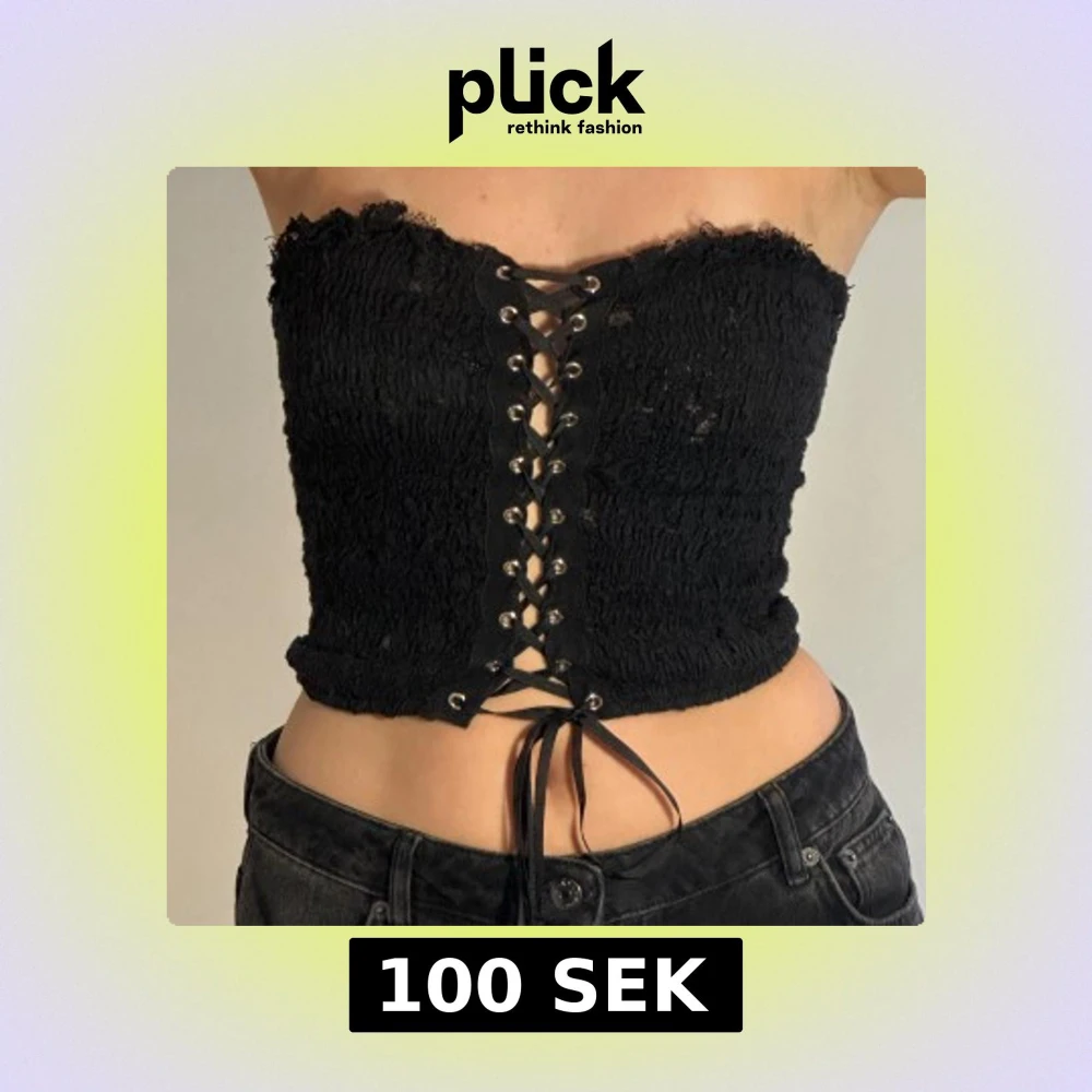 Säljer en svart korsett-topp från Zara med snygg snörning framtill! Bra skick