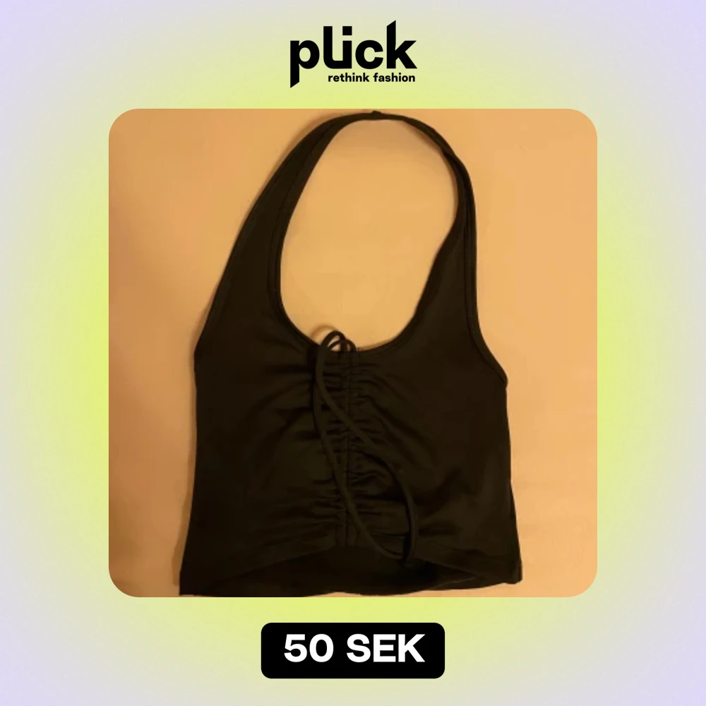 En svart topp med snörning framtill. Toppen har en halterneck-design och är ärmlös. Skriv gärna till mig om ni har några frågor 💕
