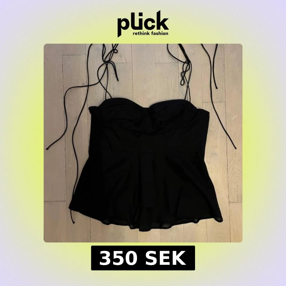 Supersnygg svart korsettopp från Zara med tunna knytband och lätt utsvängd nederdel. Toppen har vadderade kupor och smock i ryggen för extra komfort. Perfekt att styla med jeans eller kjol för en trendig look.