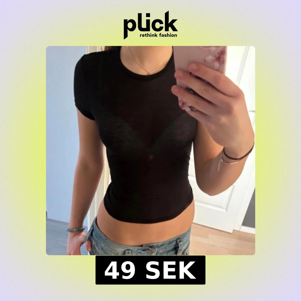 Säljer en stilren svart genomskinlig kortärmad topp med tight passform. Perfekt för en enkel och snygg look. Passar bra till allt💕
