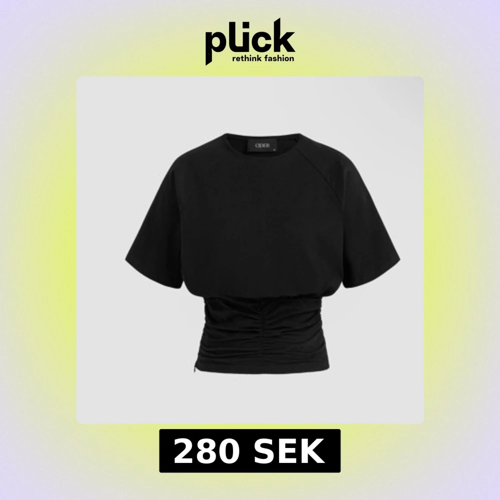 Snygg svart topp från Cider med korta ärmar och rynkad midja. Säljer då den var för tajt på mig❤️