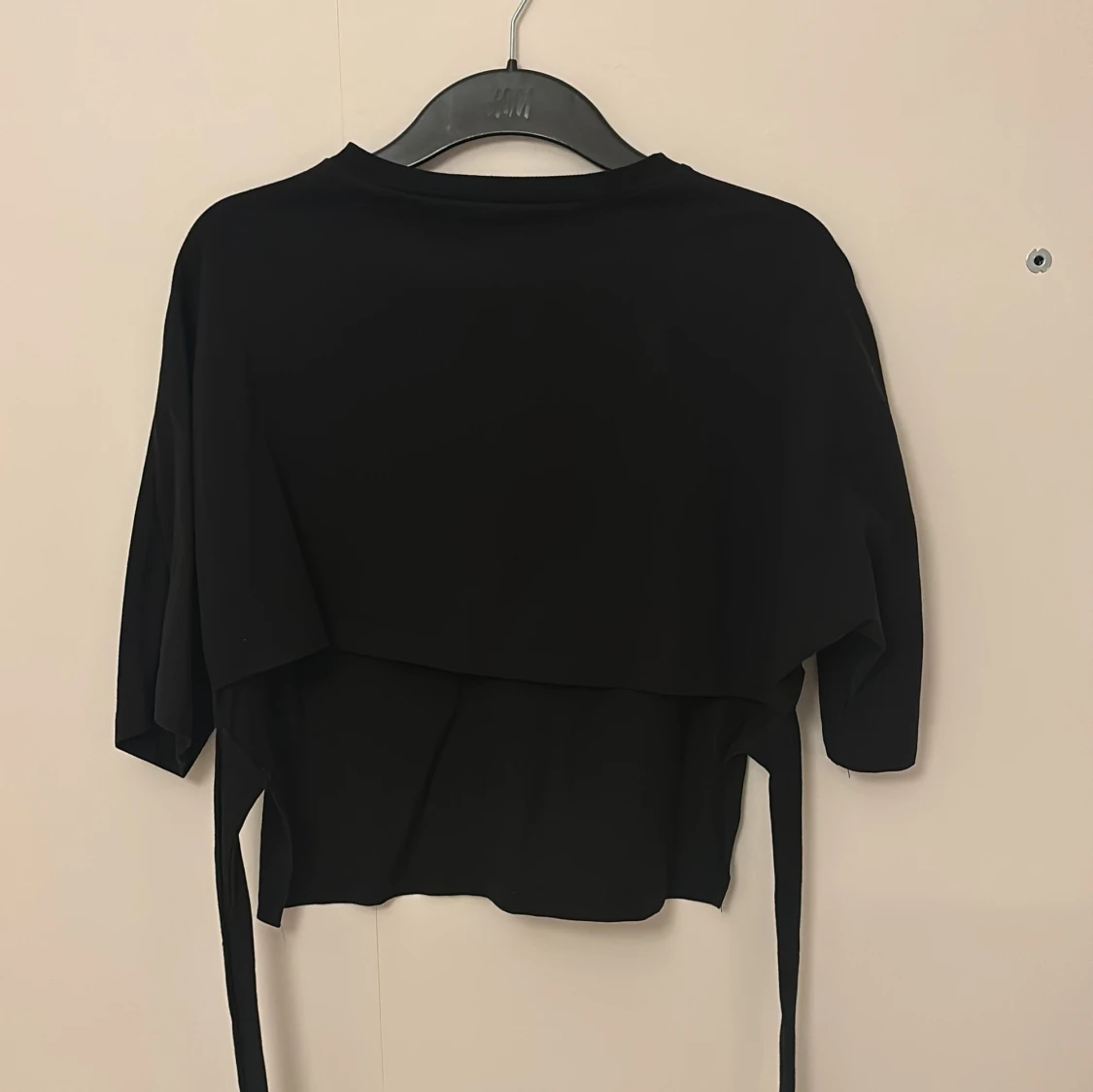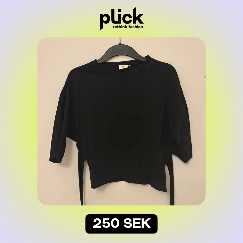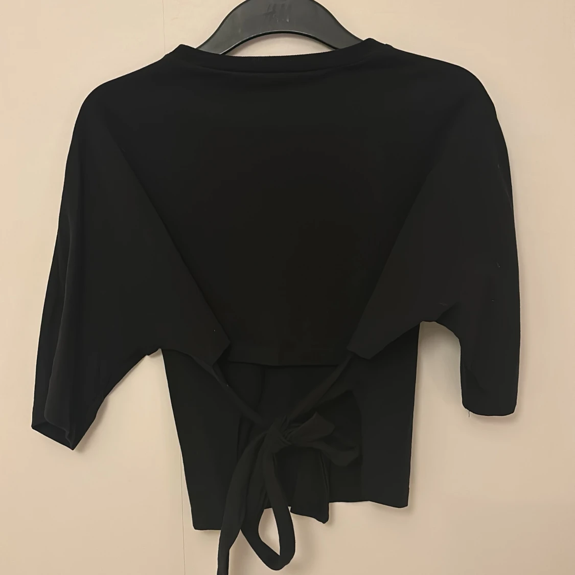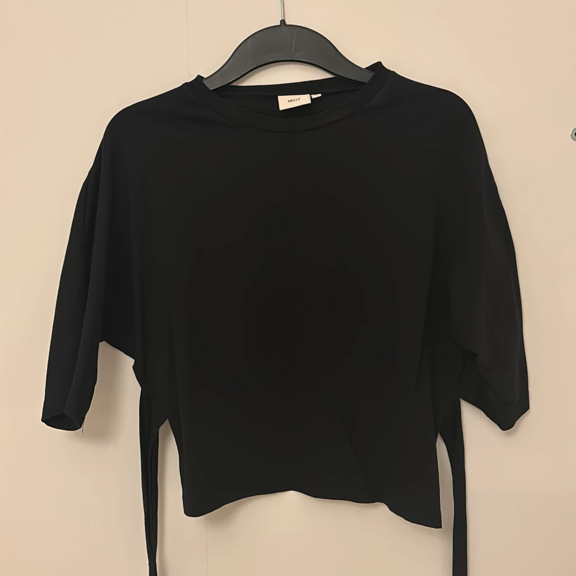 Snygg, trendig och populär svart topp från Nelly i ett mjukt material. Den har korta ärmar och knytband i midjan för en justerbar passform. Perfekt för både vardag och fest! Kommer tyvärr inte till användning✨✨