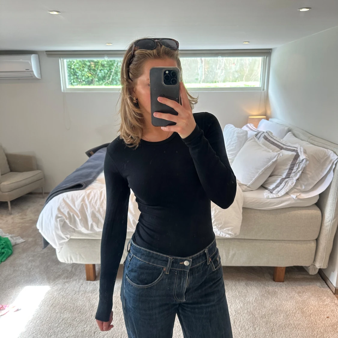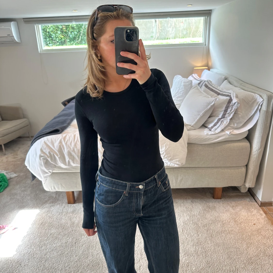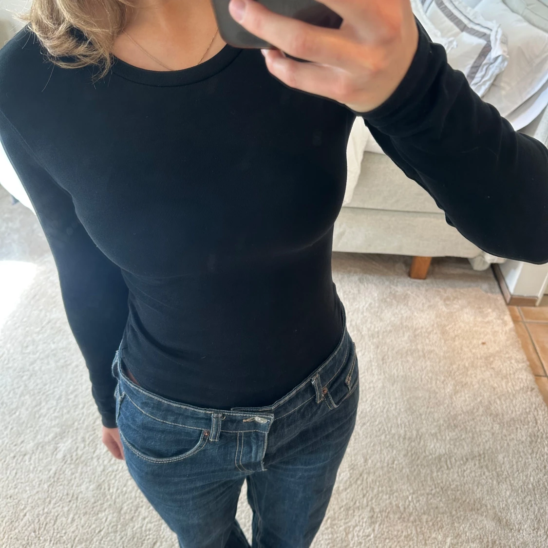 Säljer denna stilren svarta långärmade bodyn från Zara. Den sitter superfint på och är perfekt som basplagg!!