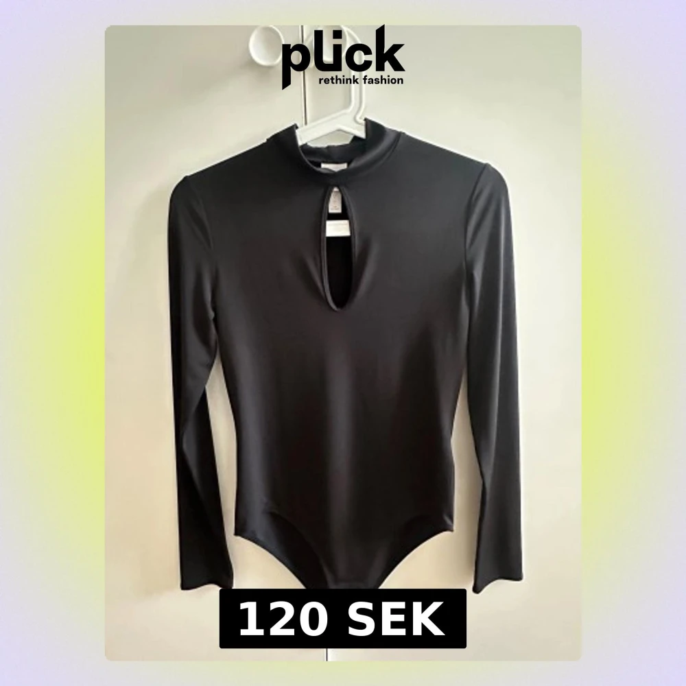 Säljer en svart långärmad bodysuit med hög hals och snygg cut out-detalj framtill. Materialet är mjukt och stretchigt polyester med tight passform som sitter snyggt och ger en clean look. Perfekt att styla med jeans eller kjol
