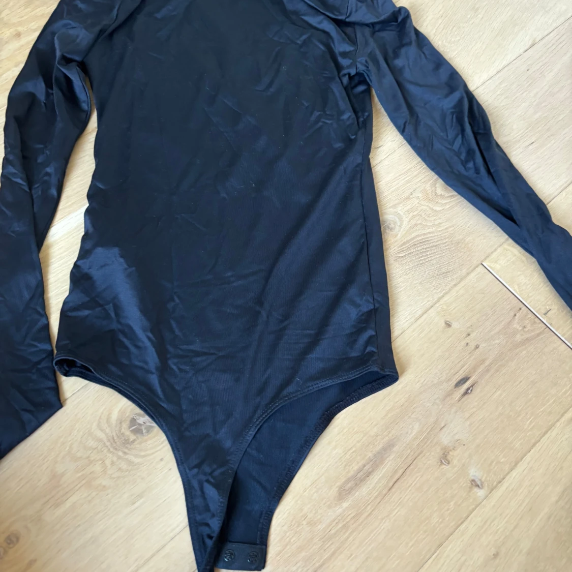 Svart, figurnära bodysuit från Missguided med långa ärmar och rund hals. Tillverkad i mjukt, stretchigt material med tryckknappar i grenen för enkel på- och avtagning. Perfekt att styla med jeans eller kjol för en clean look.