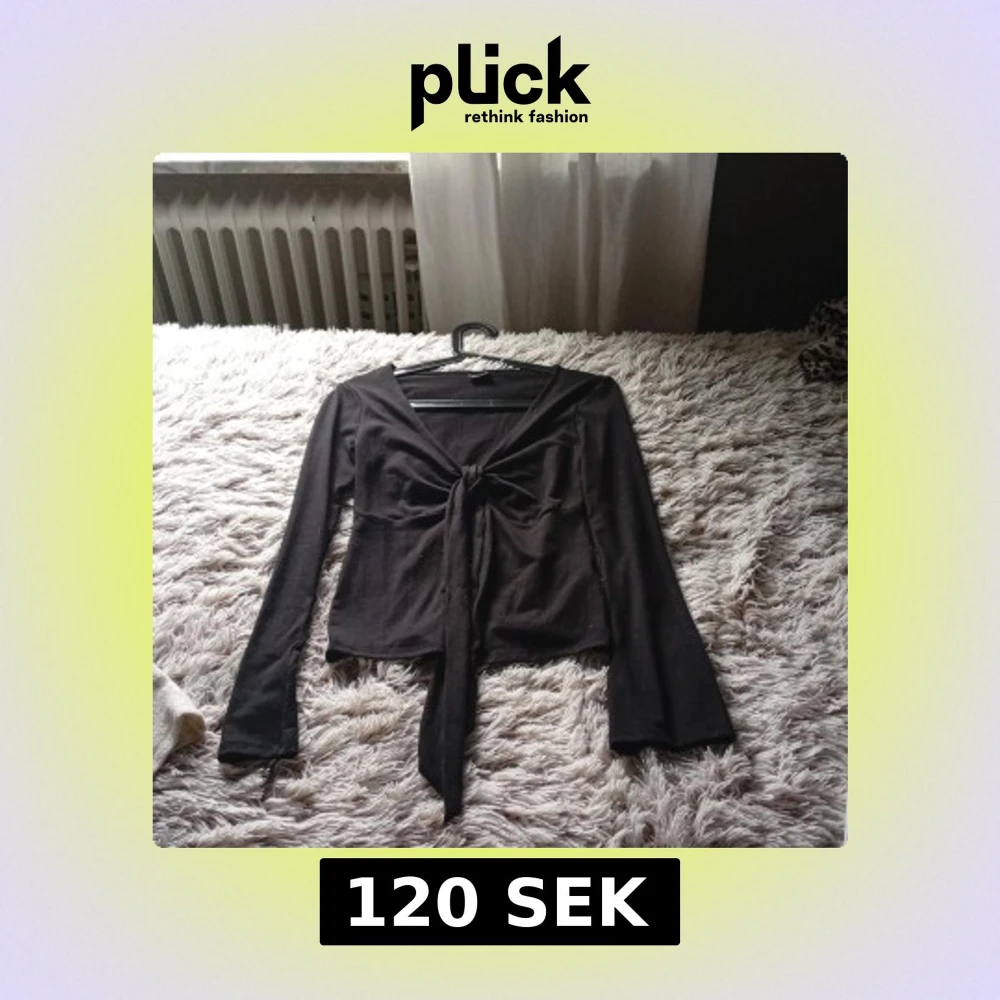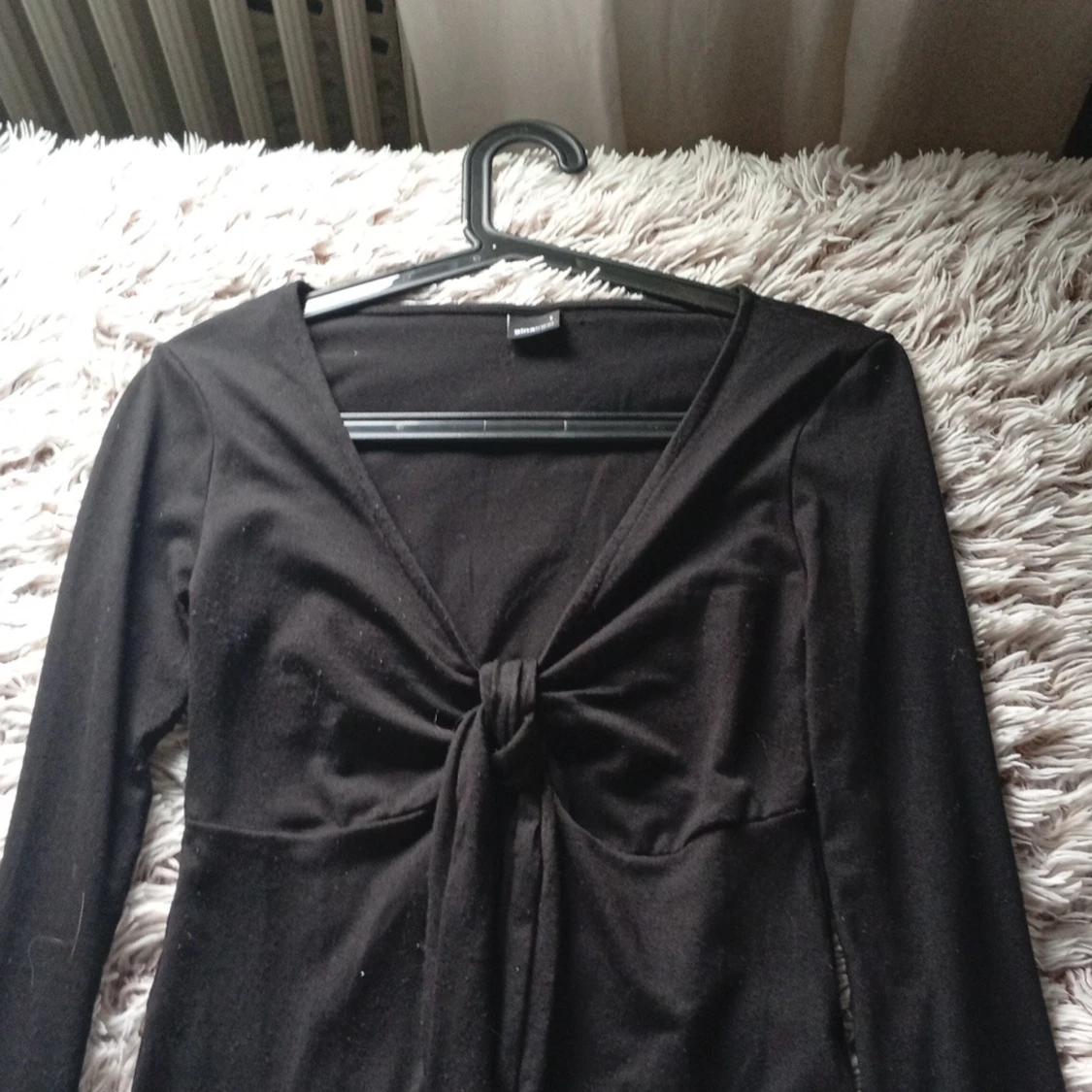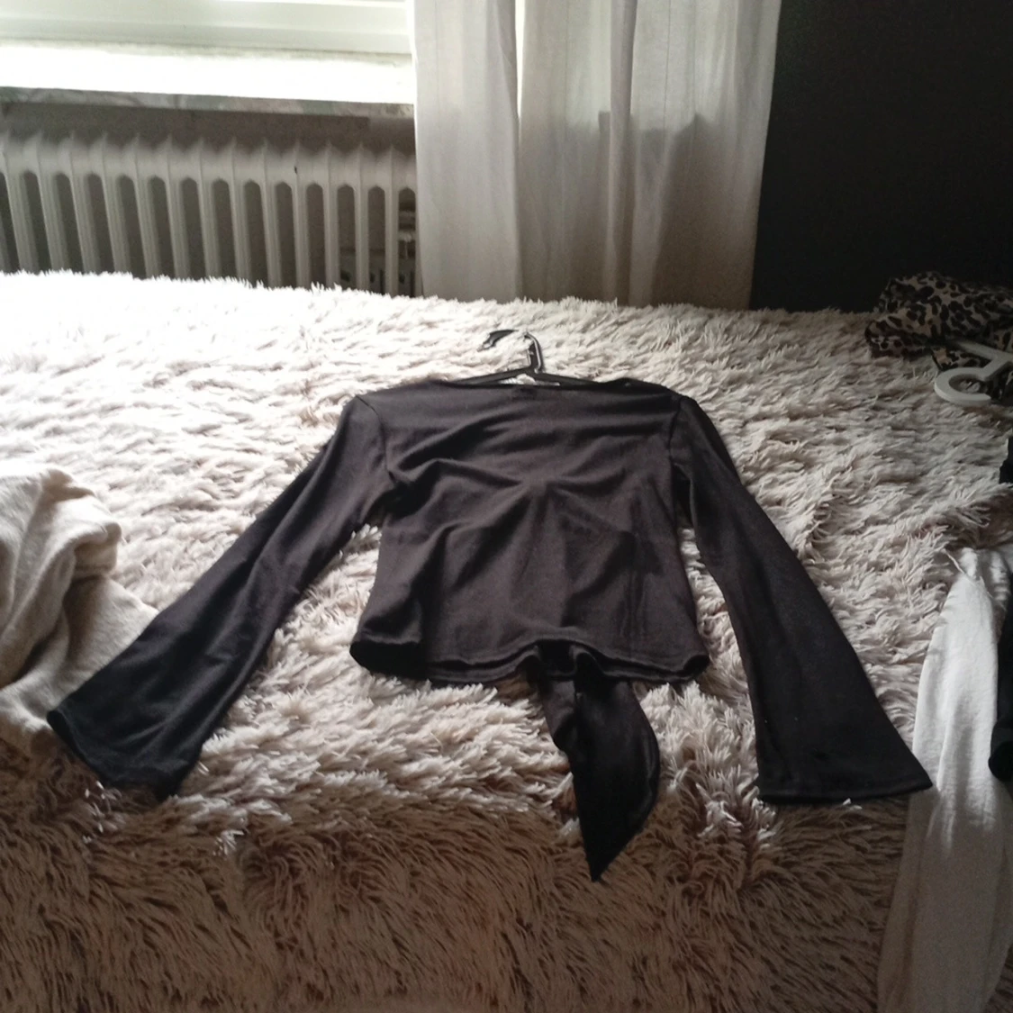 Svart långärmad topp från Gina Tricot med v-ringning och snygg knytning framtill. Pris kan diskuteras