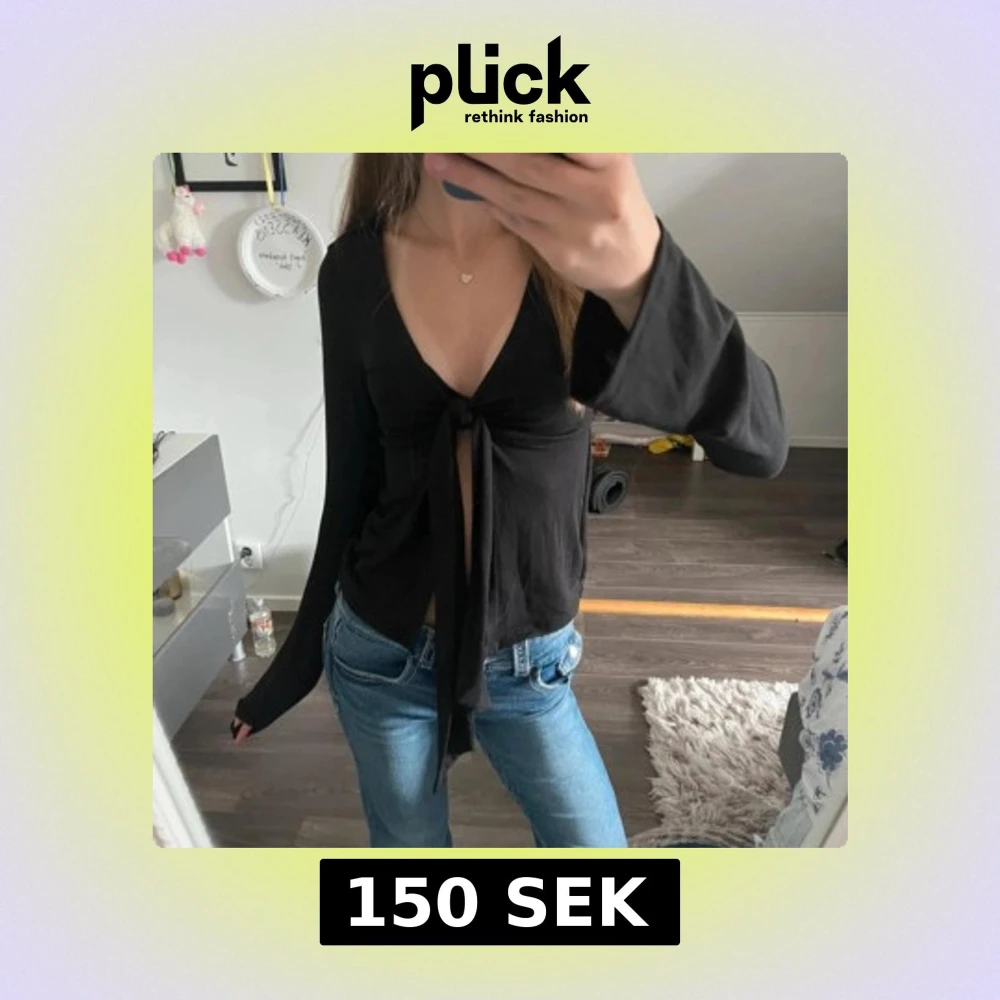 Svart långärmad topp med djup v-ringning och knyt framtill. Modellen har vida ärmar och croppad passform som ger en trendig look. Perfekt att styla med jeans eller kjol för en cool vibe.