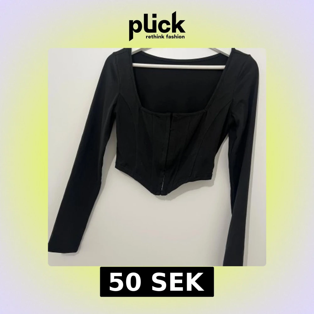 Svart långärmad korsettopp med croppad passform och hakknäppning framtill. Aldrig använd, endast testad.