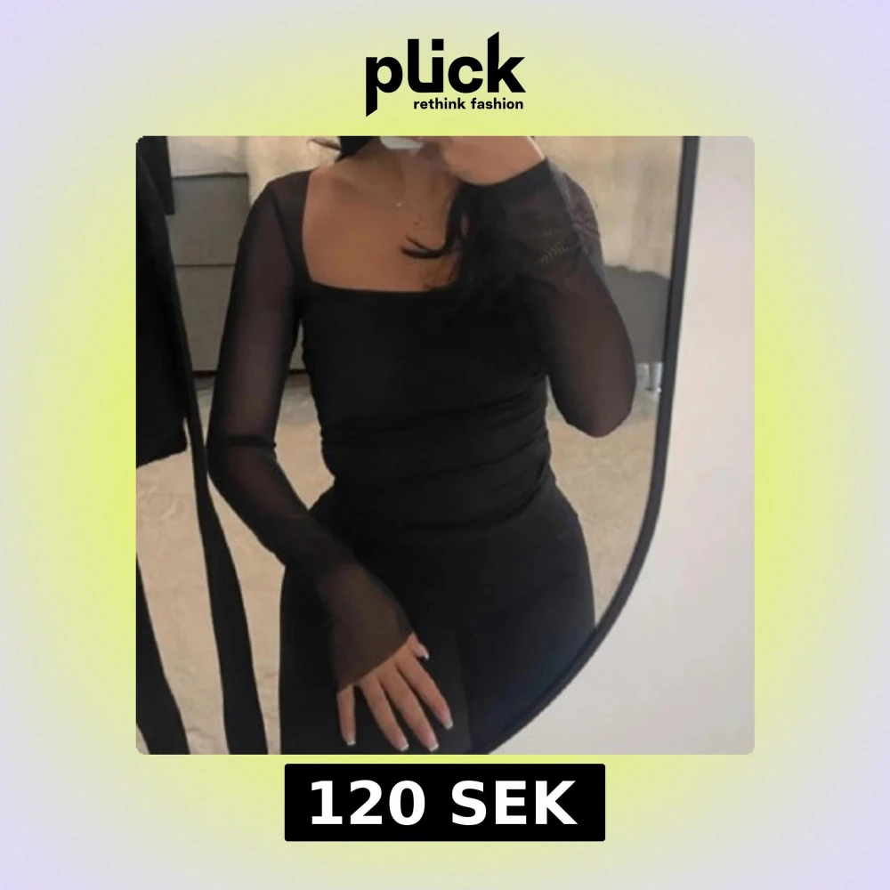 Snygg svart klänning med långärmade meshärmar och en tight passform. Perfekt för en elegant kvällslook. Klänningen har en stilren design med en fyrkantig urringning.