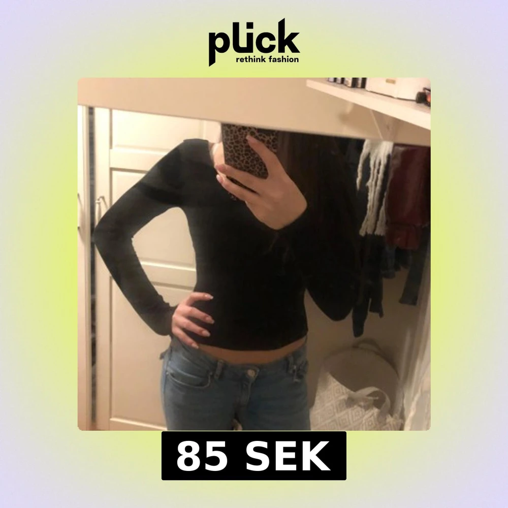 Säljer en stilren svart långärmad topp med en tight passform. Perfekt för en enkel och snygg look. Toppen är gjord i ett mjukt material som sitter skönt mot kroppen. Djup urringning i ryggen🤍🤍