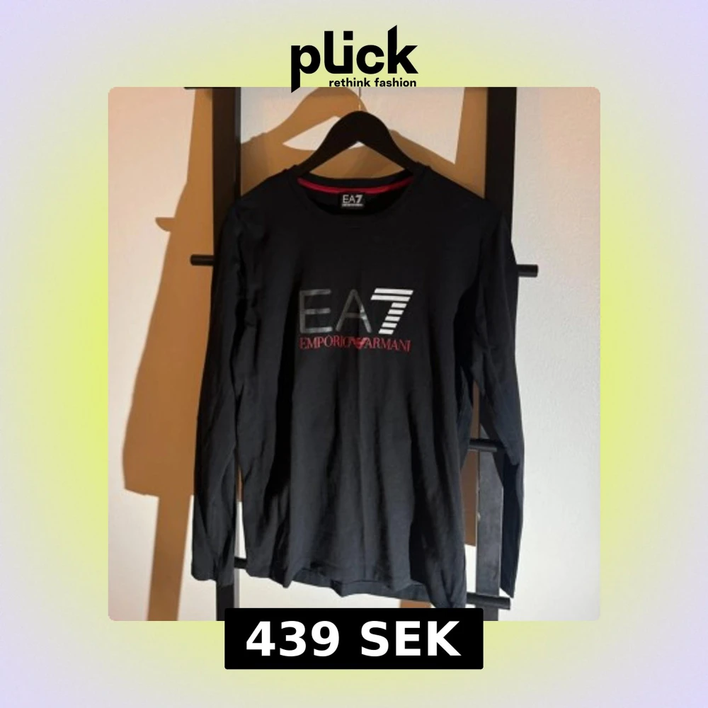 Svart långärmad topp från EA7 Emporio Armani med tryckt logga i silver och rött framtill. Knappt använd. Passar L/M