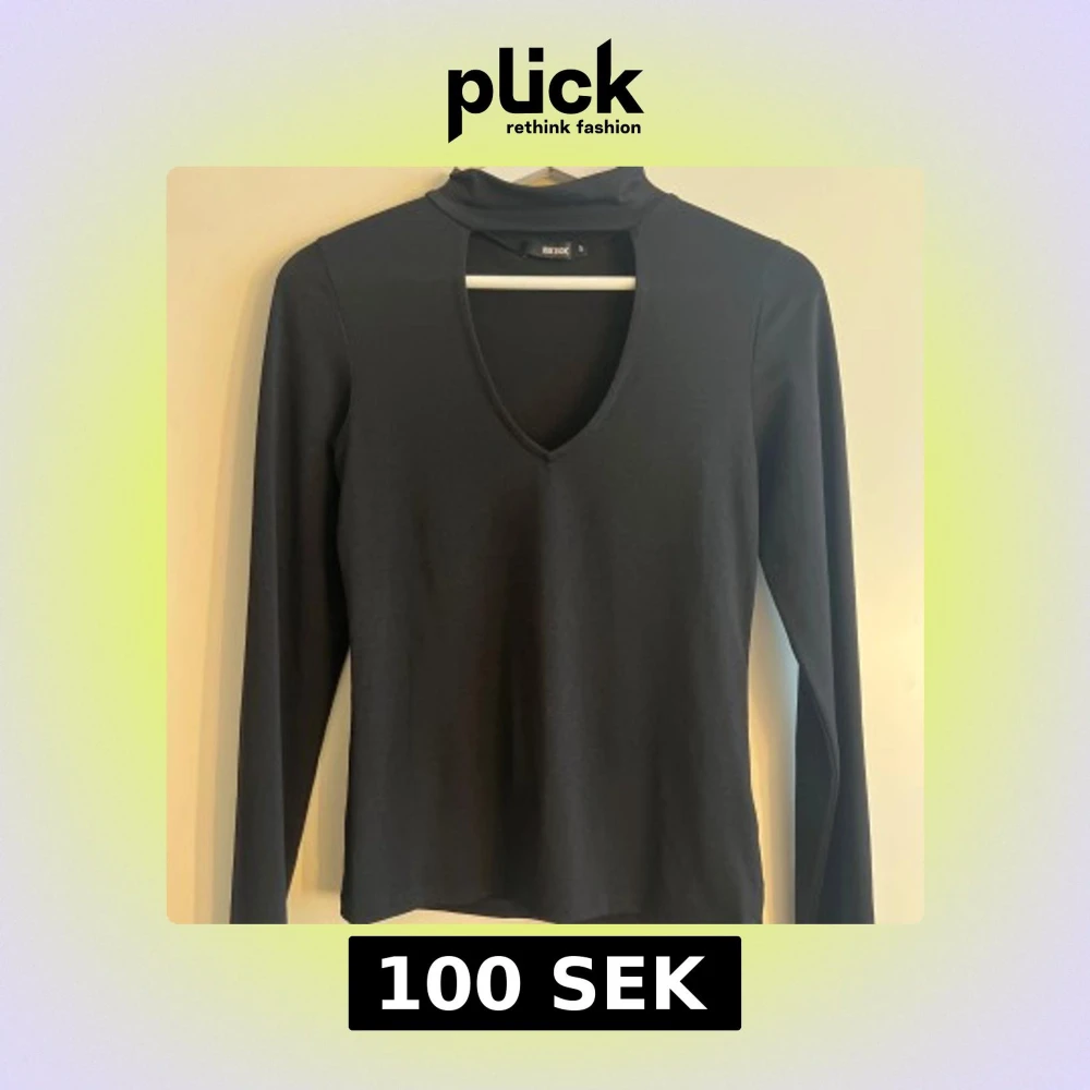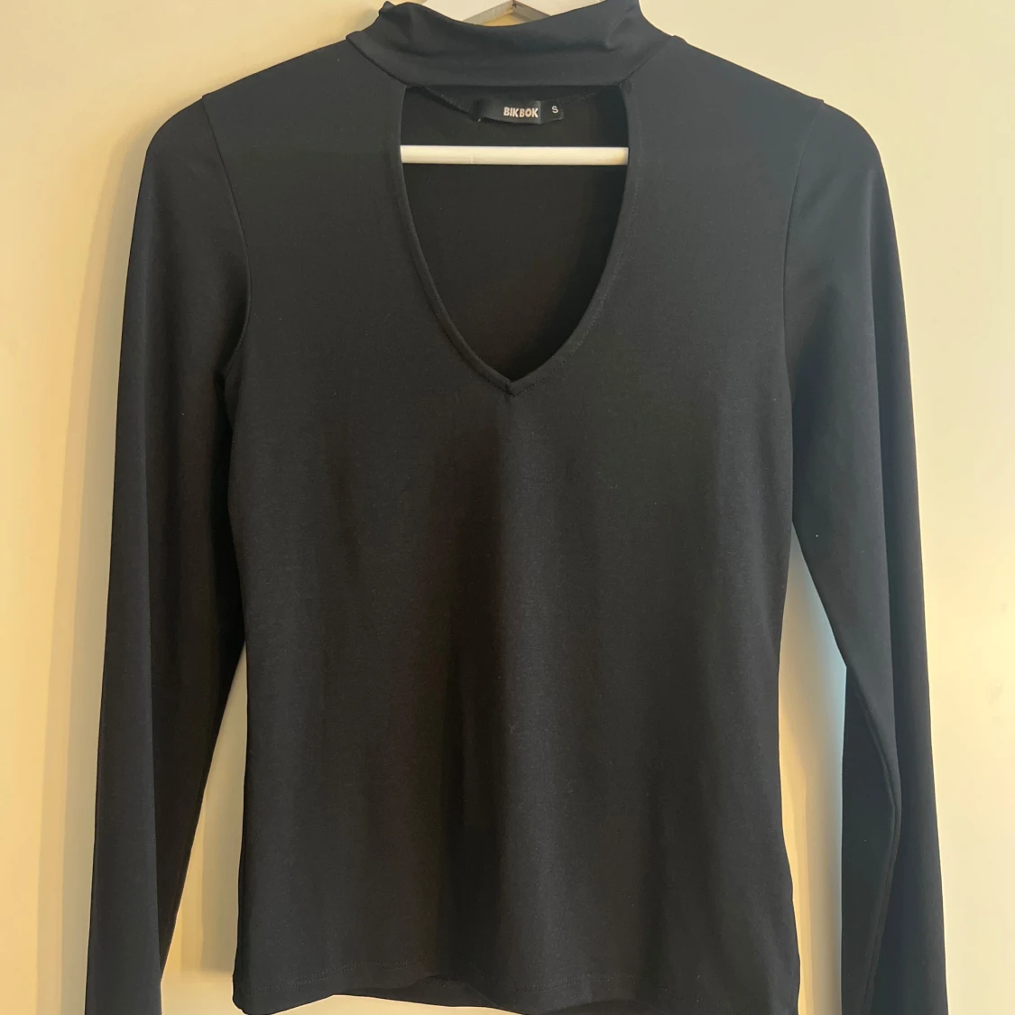 Svart långärmad topp från Bik Bok med snygg v-ringning, vilket ger en fin silhuett. Tunt och stretchigt material. Enkel men trendig design som funkar året runt. Priset kan diskuteras 🫶