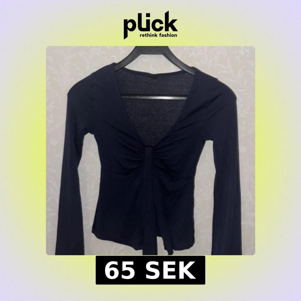 Snygg svart långärmad topp från Gina Tricot i storlek XXS. Toppen har en v-ringad design med knytning framtill, perfekt för en stilren look.