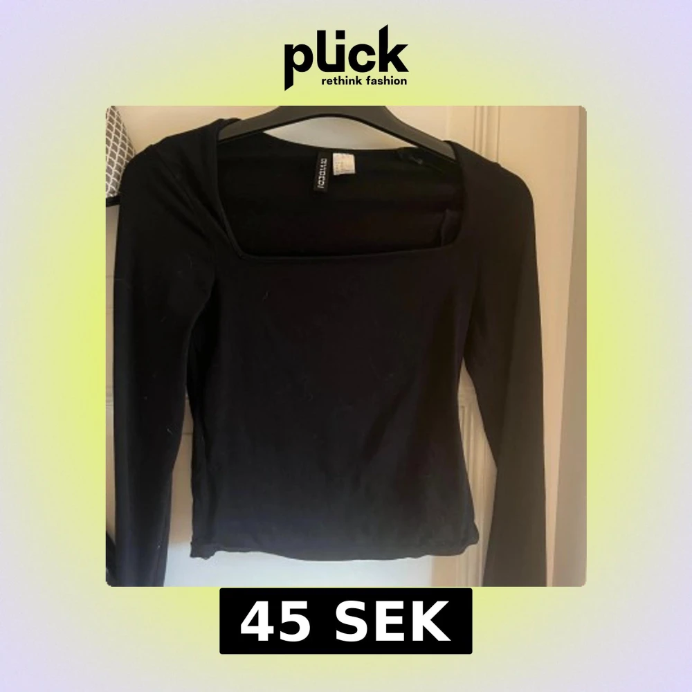 En svart långärmad topp från H&M Divided med fyrkantig urringning. Toppen är i en slim passform och tillverkad i mjuk bomull, perfekt att styla med jeans eller kjol. Enkel och stilren design som funkar till många olika looks.