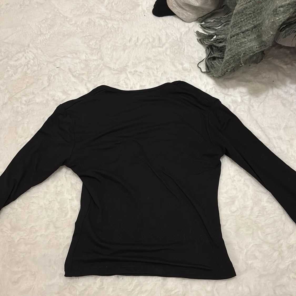 En svart långärmad topp från Missay med fyrkantig urringning och figurnära passform. Stretchigt och tunt material, även väldigt mjuk. Går att matcha med det mesta!💕