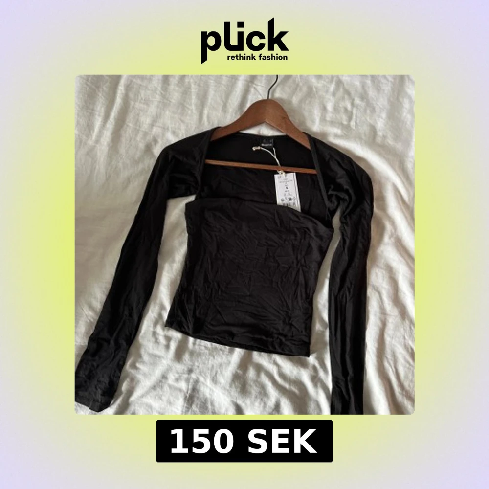 Svart långärmad topp från Gina Tricot med fyrkantig ringning. 🖤