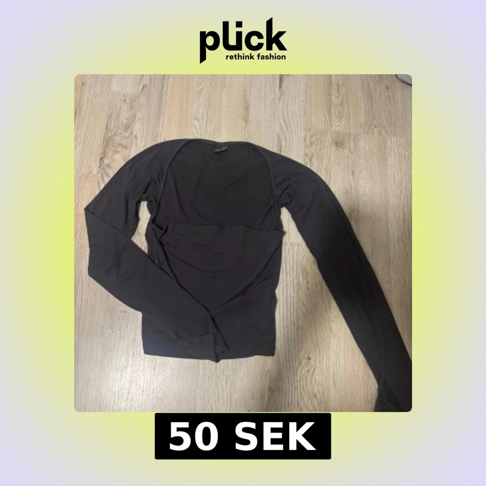 En stilren svart långärmad topp med rund halsringning. Tunn och mjuk i materialet, perfekt att matcha med jeans eller kjol. Enkel design utan synliga detaljer. Mörk grå