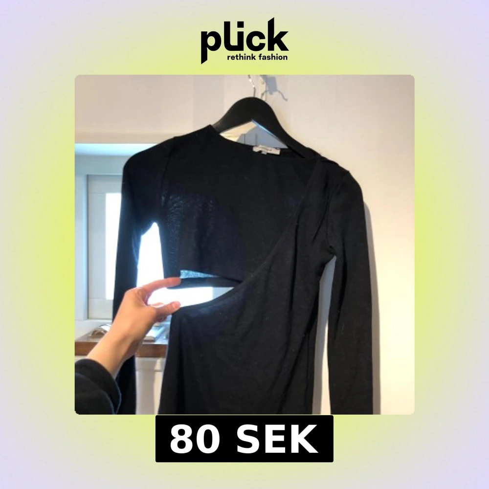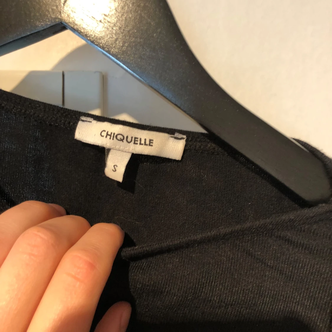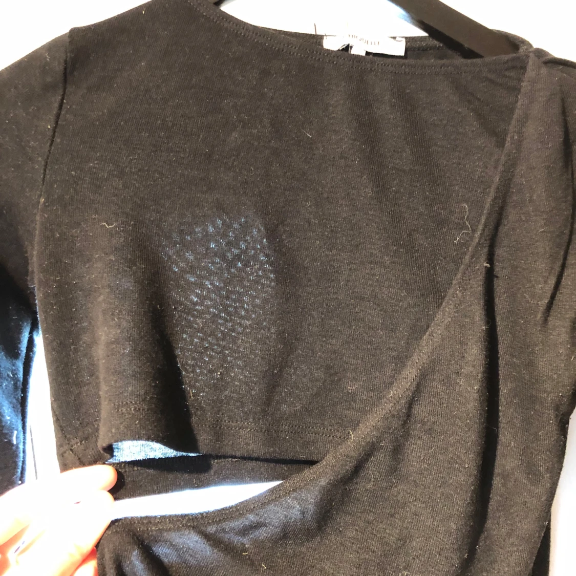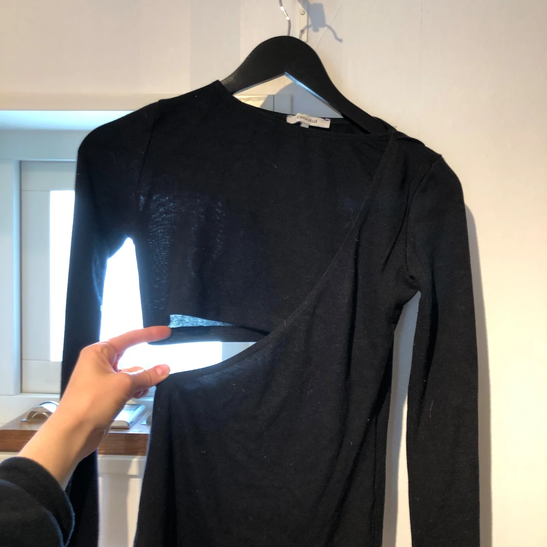 Cool svart långärmad topp från Chiquelle med unik asymmetrisk cut out-detalj över magen. Tunn och stretchig, perfekt för dig som vill sticka ut. Snygg passform och enkel att matcha med både jeans och kjol.