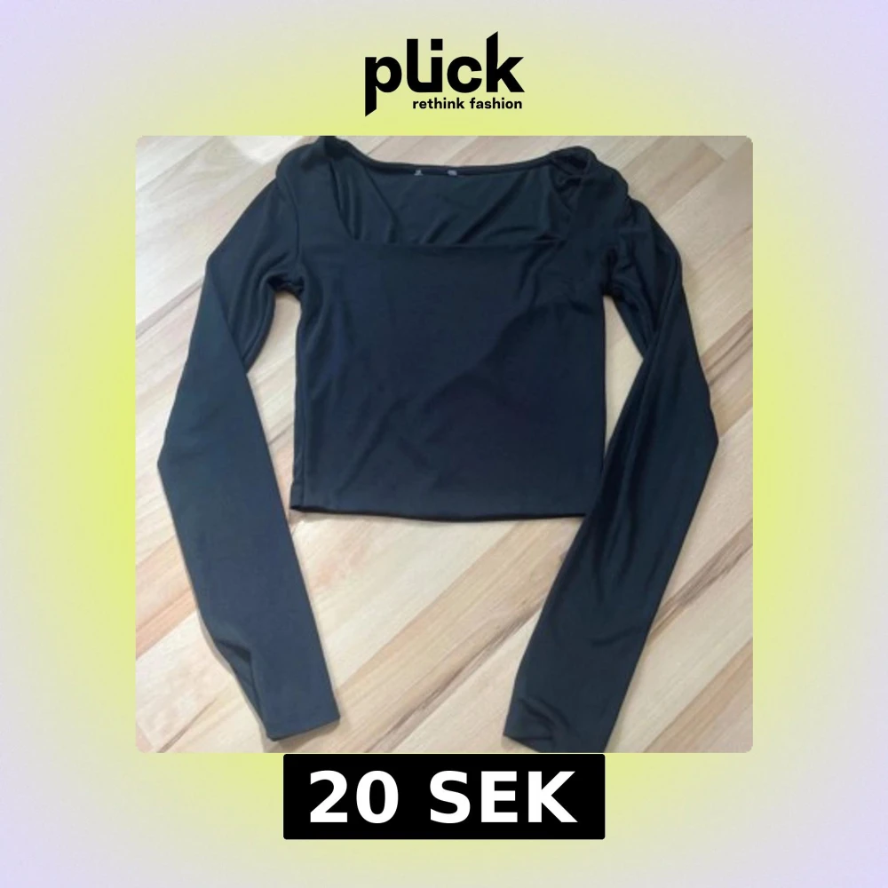 En stilren svart långärmad topp med fyrkantig ringning. Perfekt att matcha med både jeans och kjol för en trendig look. Tunn och mjuk i materialet, sitter snyggt. Från new yorker i stl xs