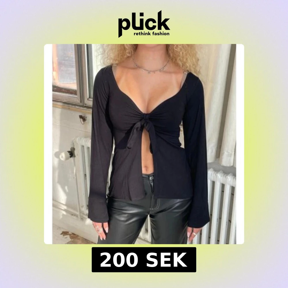 Trendig svart långärmad topp med knytning framtill ifrån Design by Si, storlek S/M