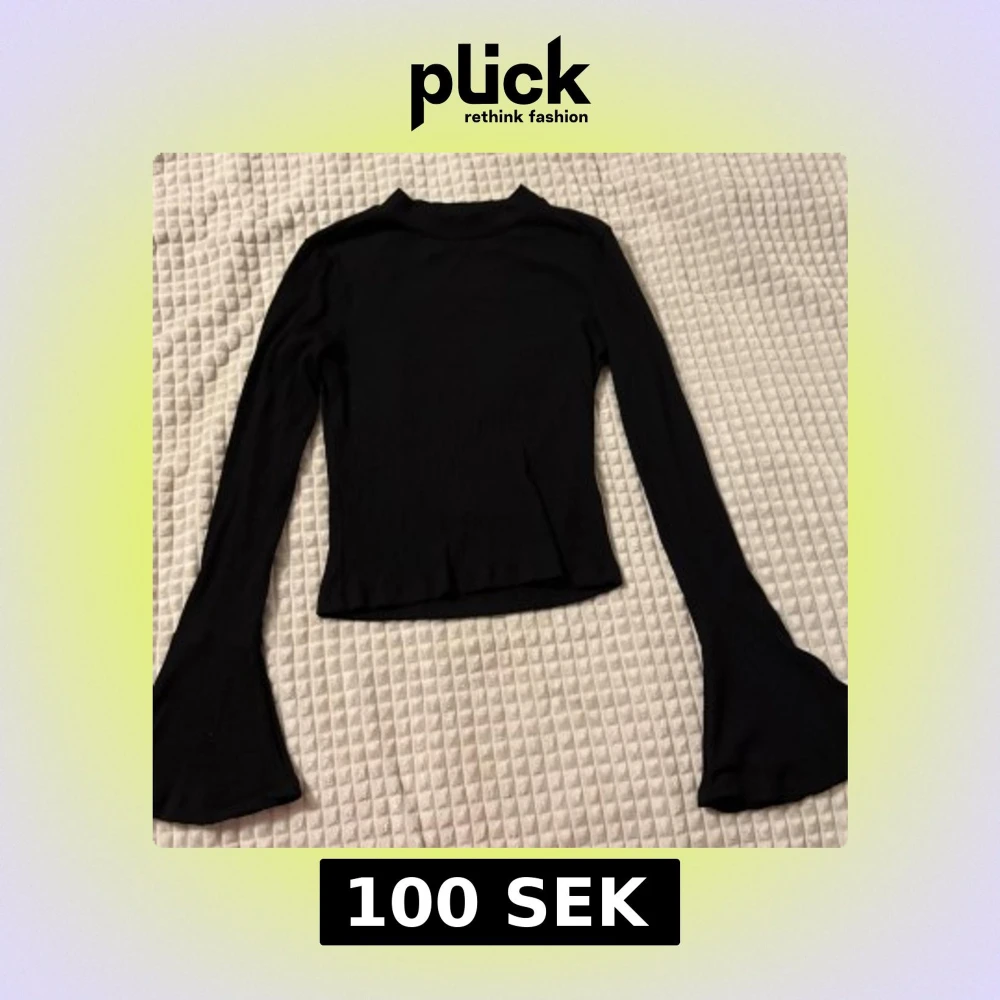 Snygg svart långärmad topp med utsvängda ärmar. Perfekt för en stilren look. Passar bra till både jeans och kjol. Om ni vill se den på, skriv gärna!