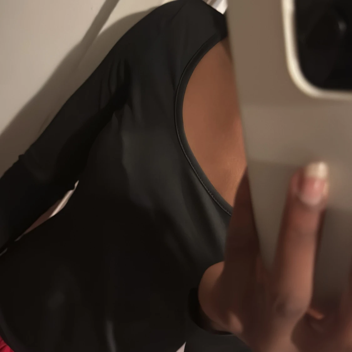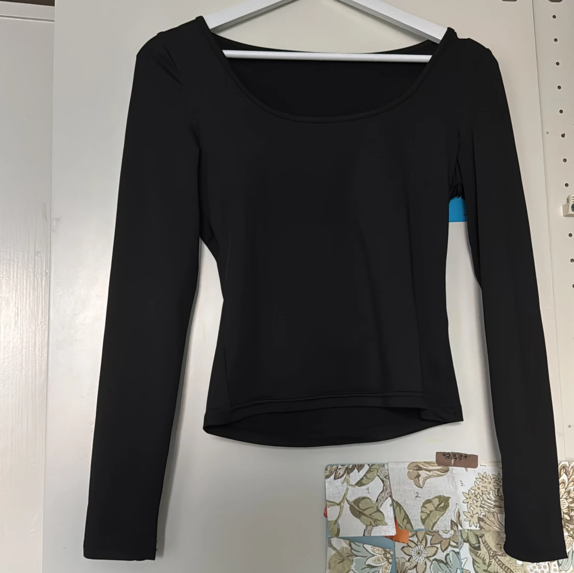 En stilren svart långärmad topp. look som passar till många outfits. Materialet är stretchigt