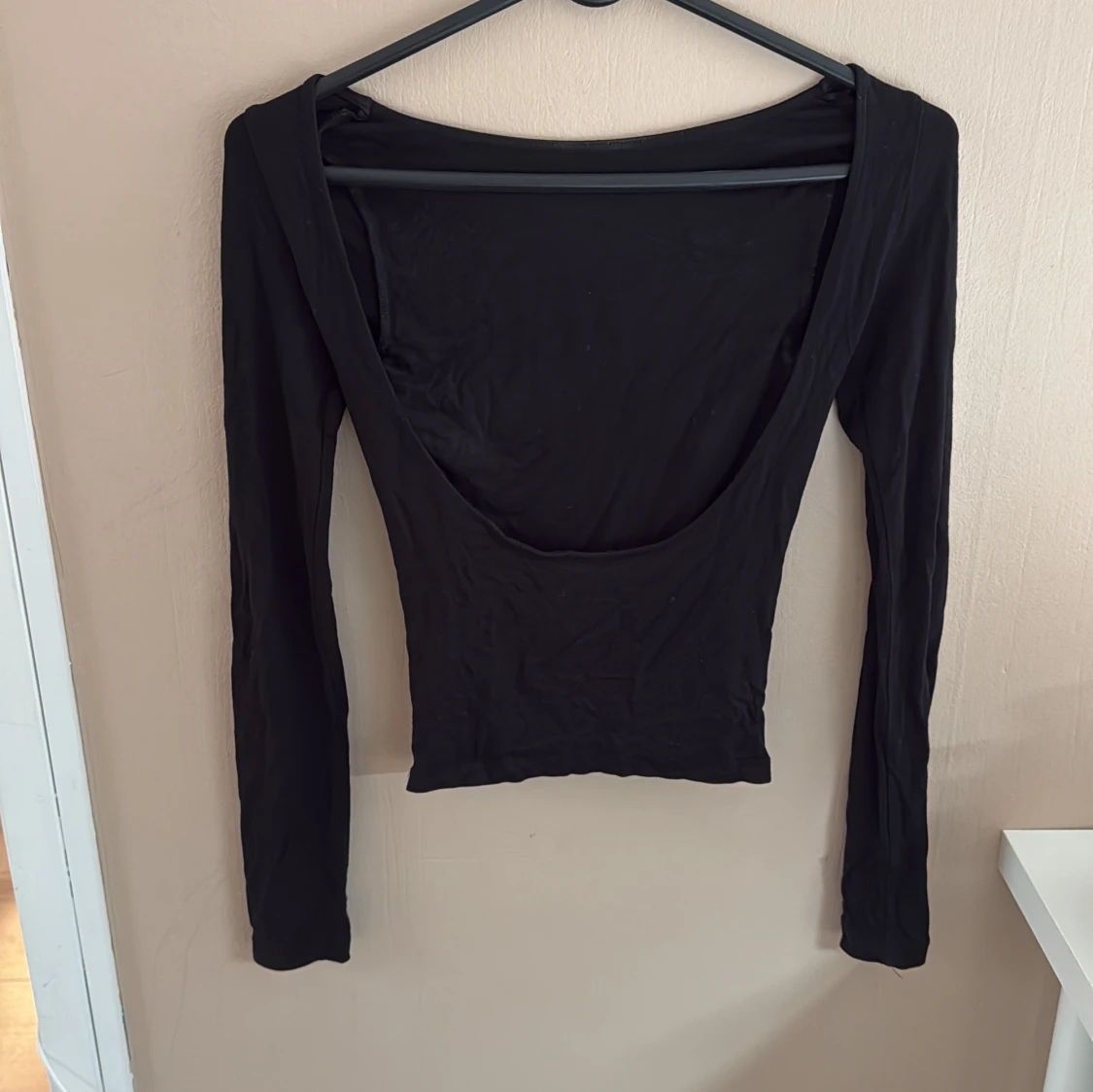 Snygg svart långärmad topp med öppen rygg från Gina i storlek xxs, använd ett fåtal gånger innan men inga defekter eller liknande