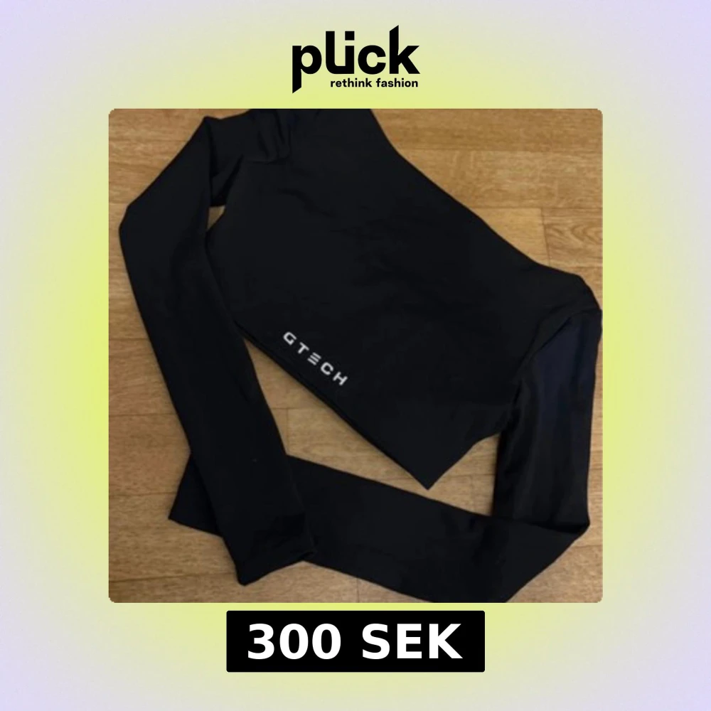 Säljer en svart långärmad croppad träningstopp från GTECH. Toppen har en tight passform och är tillverkad i ett stretchigt syntetmaterial som passar perfekt för gym eller löpning. Snygg och stilren med logga framtill.