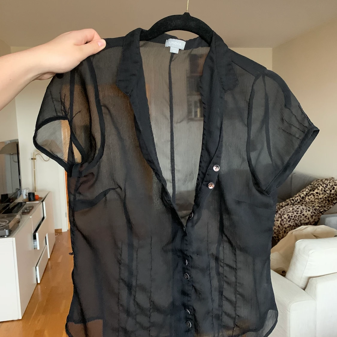 Genomskinlig svart blus, retro men aldrig använd av mig. Storlek 40 så sitter snyggt Oversized på mig som har 38!