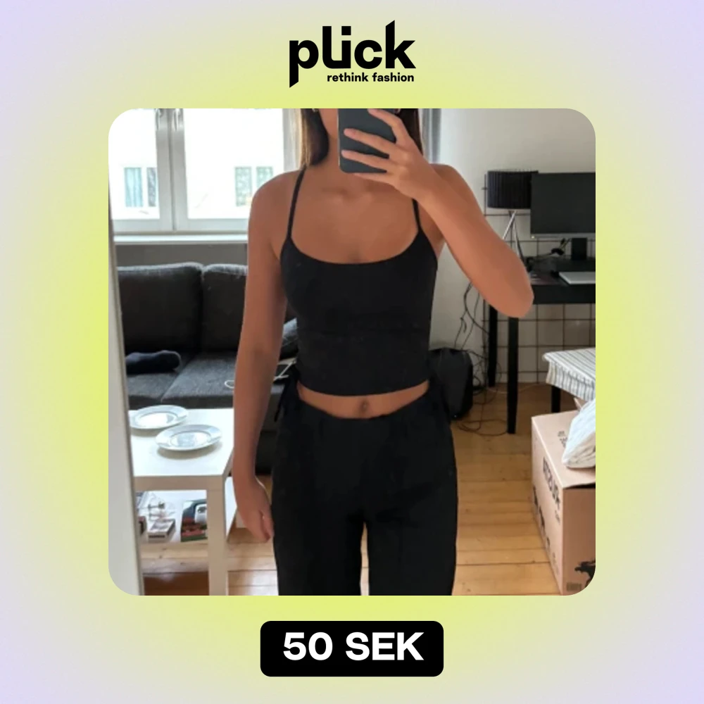 Ett svart linne med snörning på sidorna från Gina Tricot. Storlek XS 🥰 använt typ en gång!