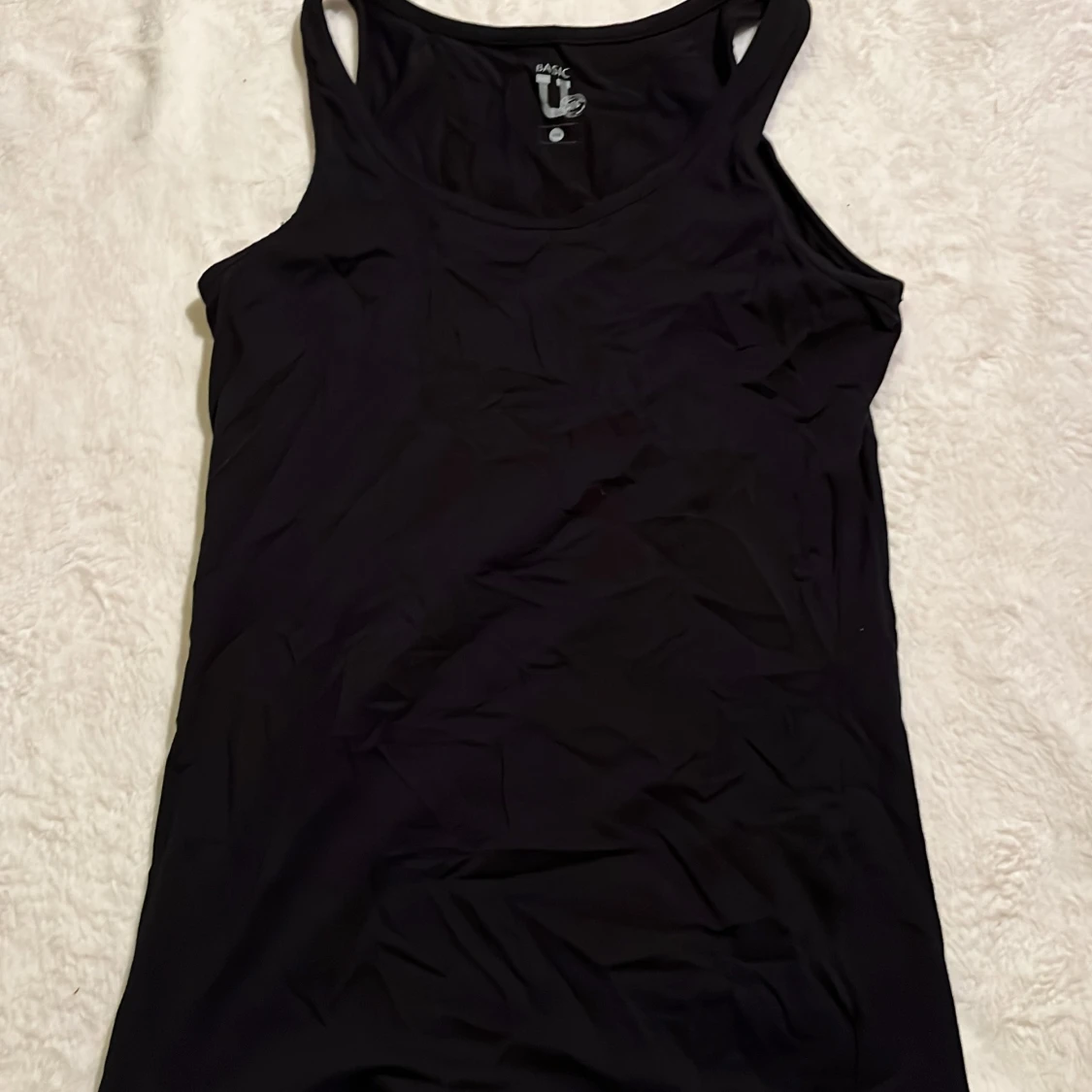 Svart, klassiskt linne från Basic U i mjuk bomull. Modellen är ärmlös med breda axelband och rund halsringning. Perfekt att styla till jeans eller shorts för en enkel och clean look.