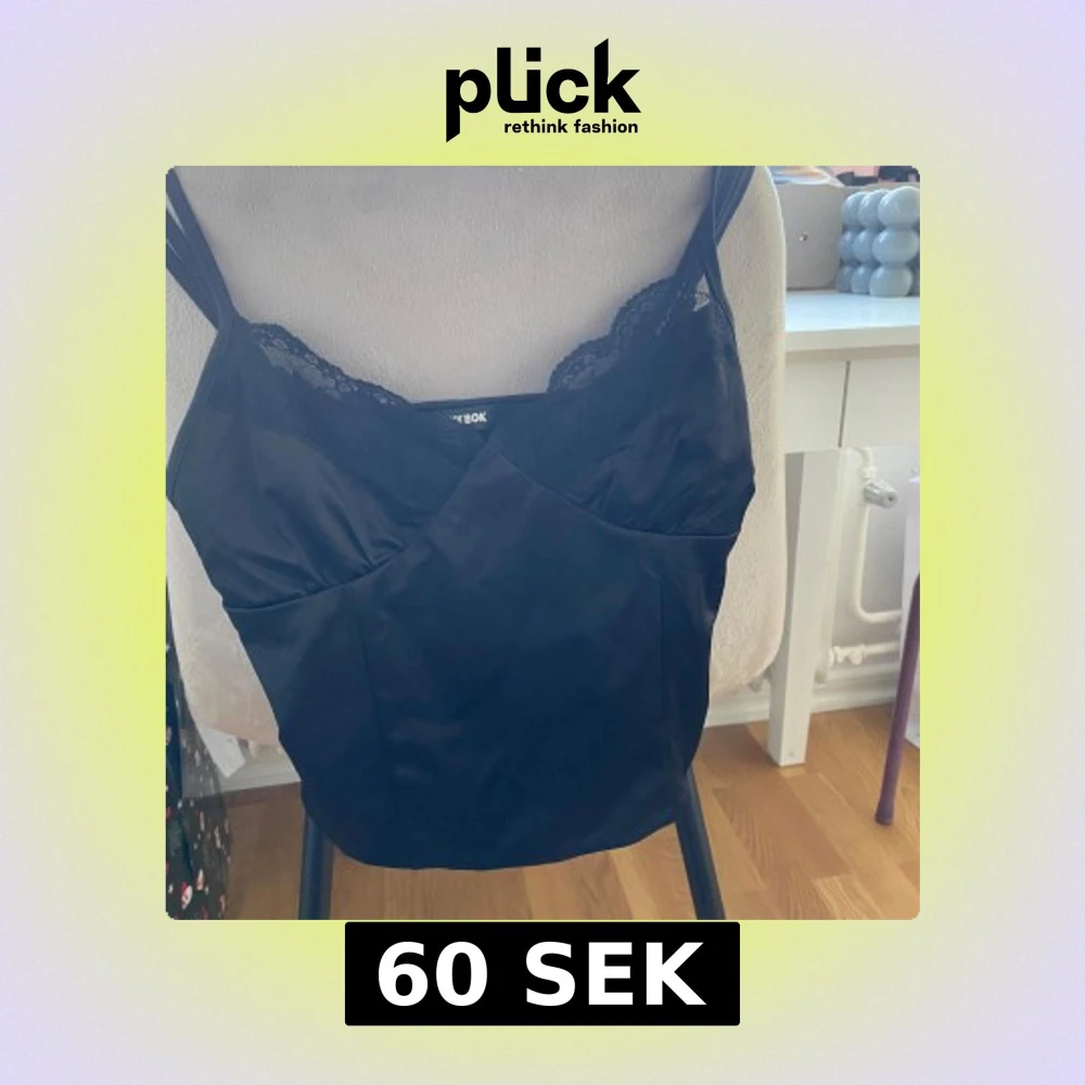 Snygg svart linne från Bik Bok med spetsdetaljer vid halsringningen. Toppen har smala axelband och en omlott-design framtill. Perfekt för en stilren look. Skicka gärna prisförslag!🩷