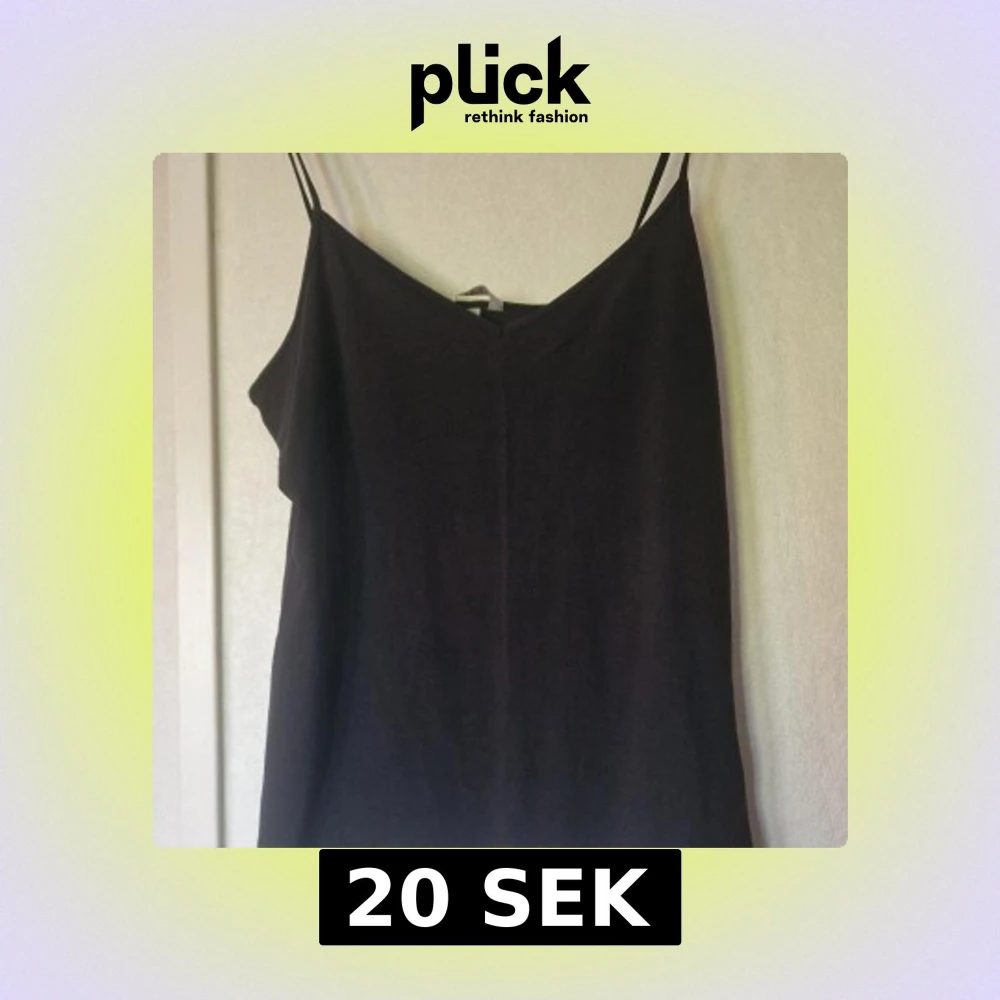 Ett enkelt svart linne från H&M Basics med smala axelband och v-ringning. Linnet har en rak, loose passform som gör den lätt att styla till olika looks.