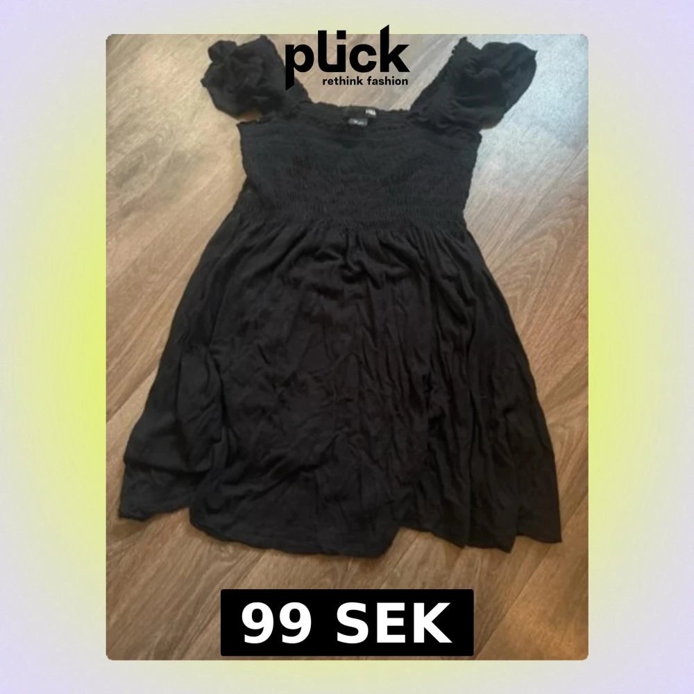 Supersöt svart linne från H&M i storlek XS. Linnet har smockad överdel, puffiga korta ärmar och en flowy nederdel. Super snygg💕