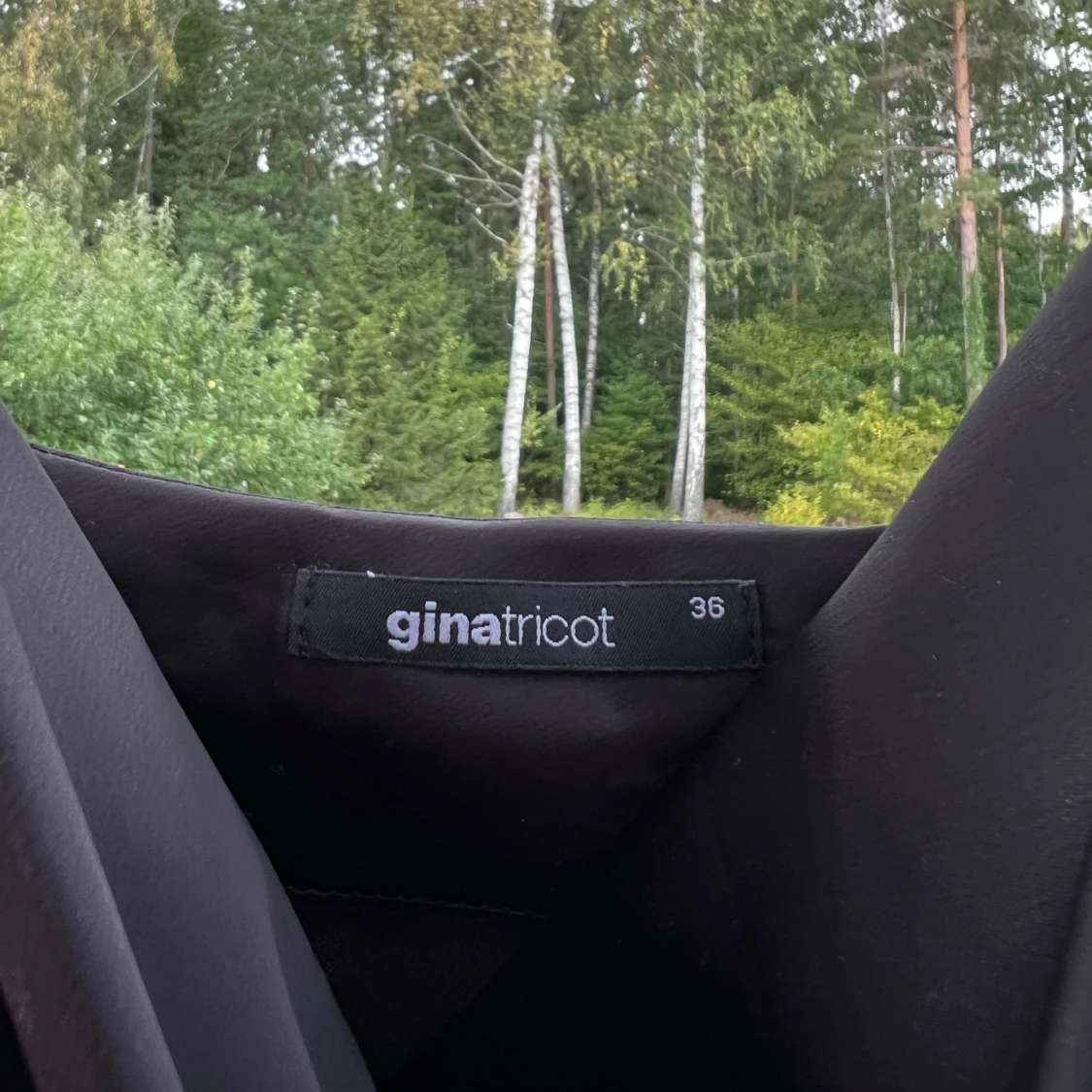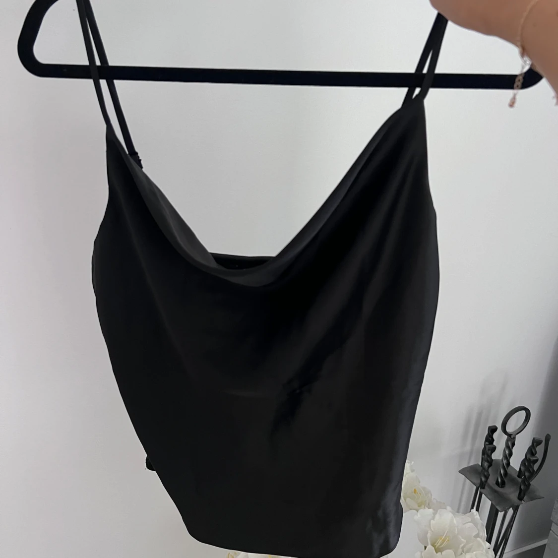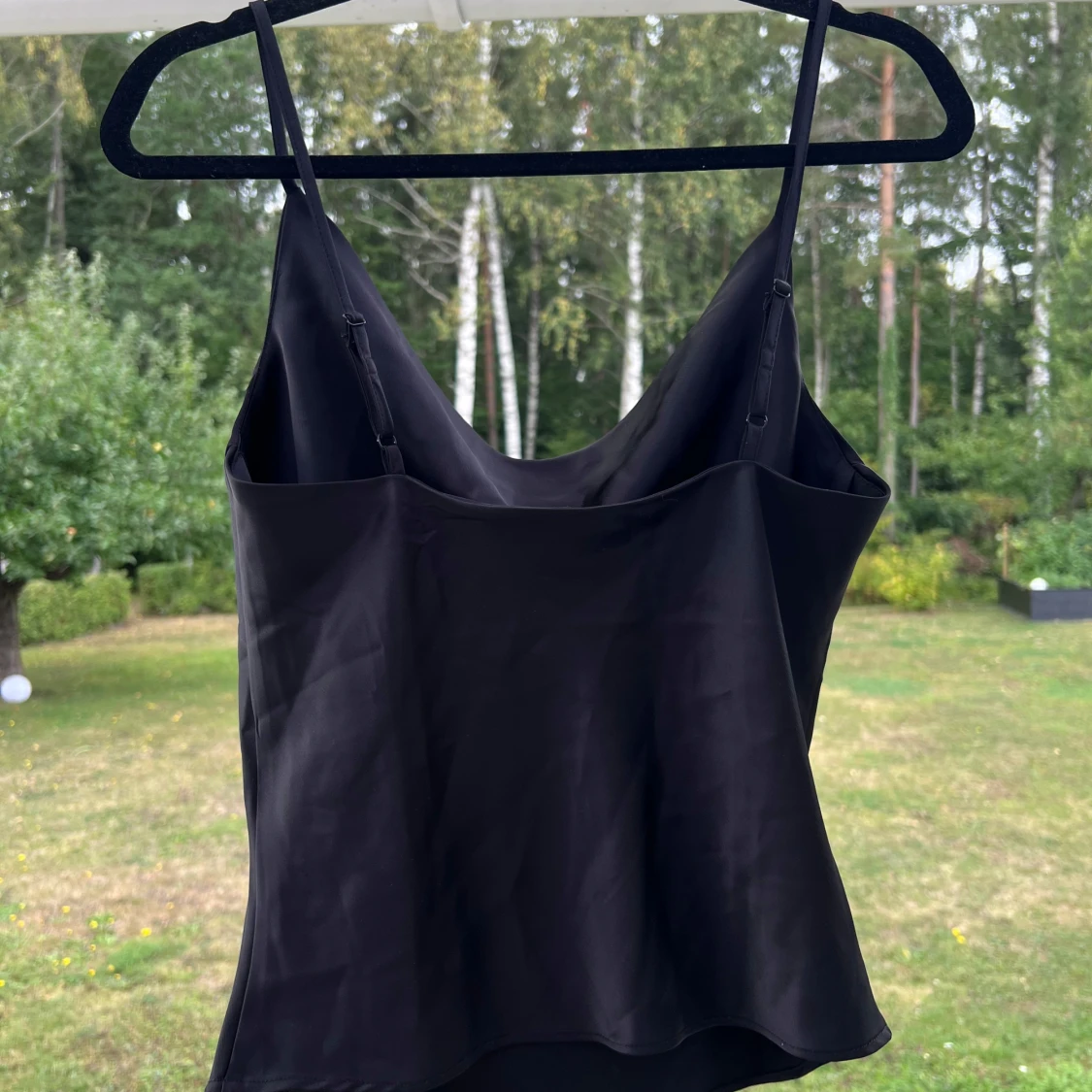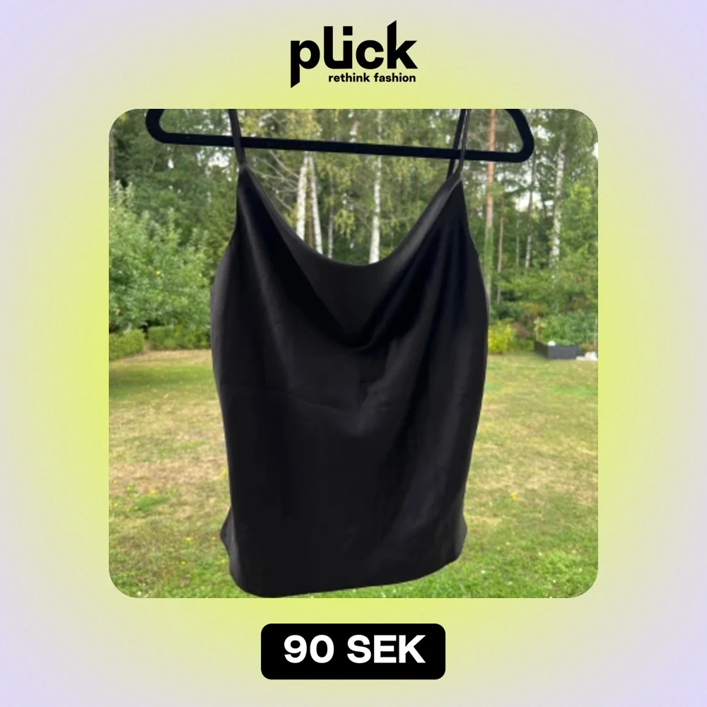 Ett svart linne i satin från Gina Tricot. Linnet är i storlek 36 men passar bra till 34 också 🤍 Endast använt en gång 🌷 Justerbara axelband. Längd: 44 cm
