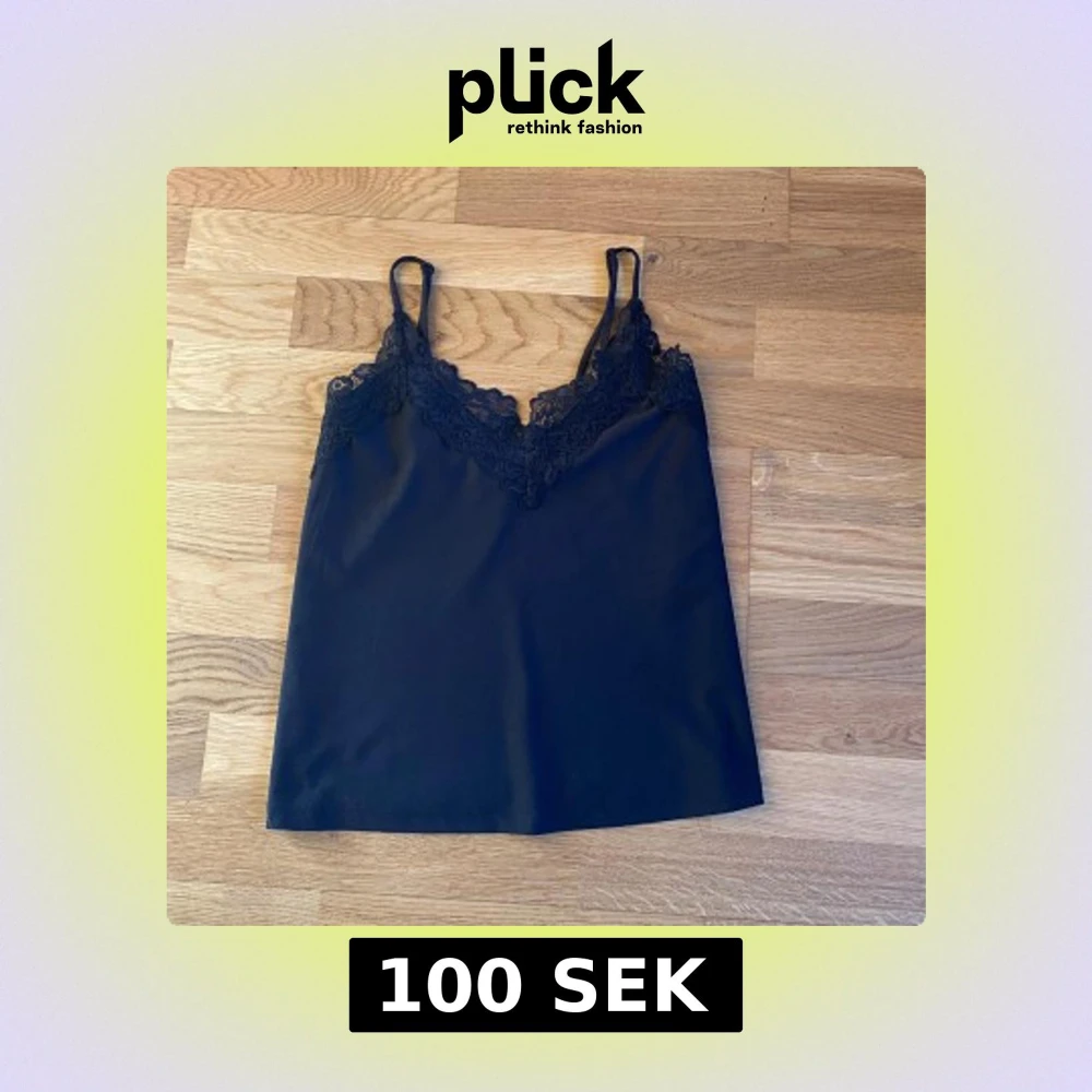 Snyggt svart linne från Vero Moda med vackra spetsdetaljer vid halsringningen. Perfekt för en stilren look. Linnet har smala axelband och är tillverkat i ett mjukt material.
