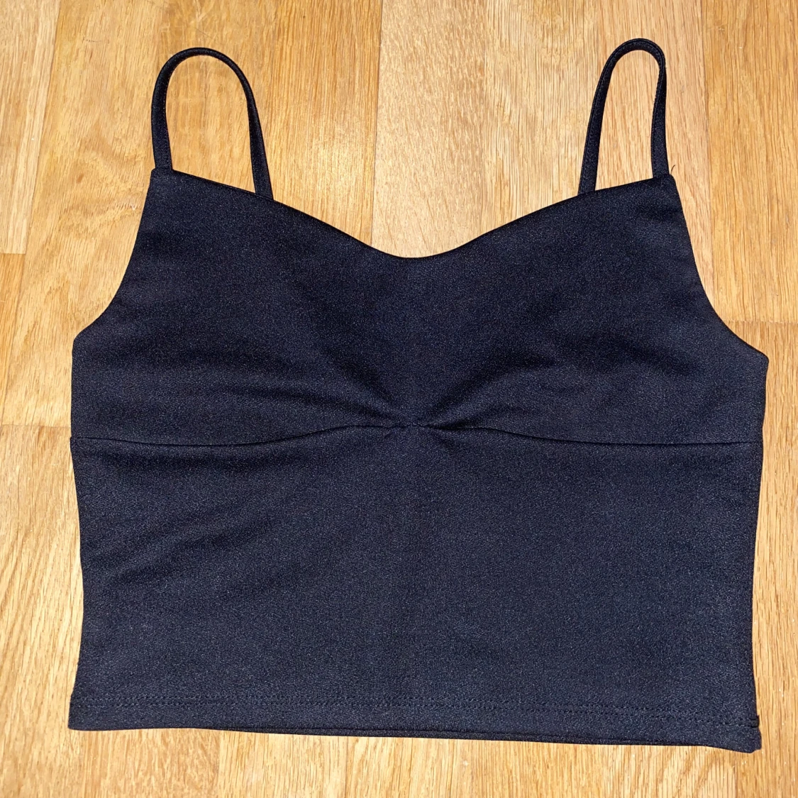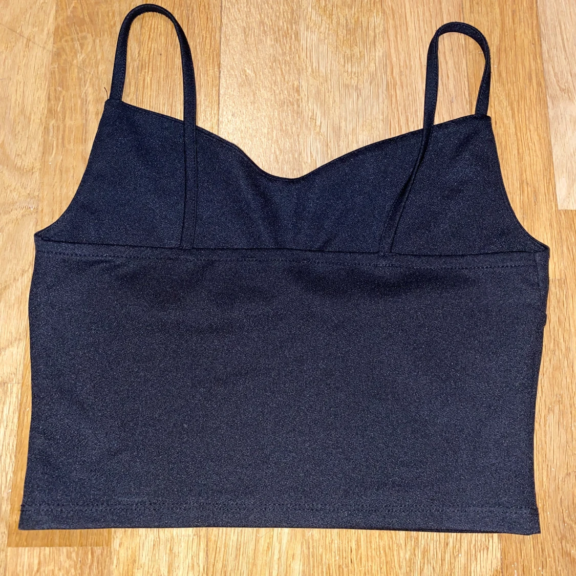 Snygg svart linnetopp med smala axelband och en enkel design. Perfekt för en stilren look.