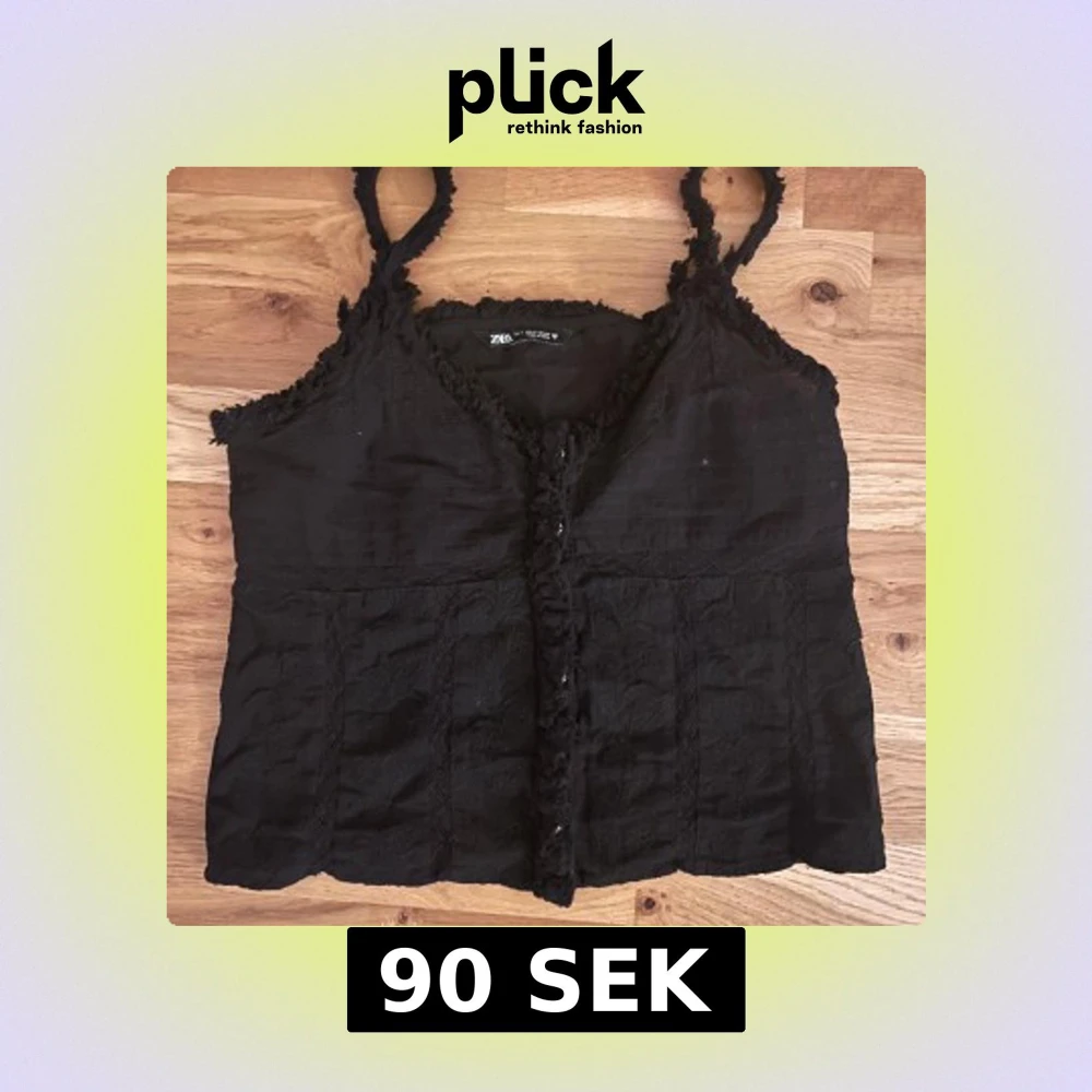 Svart linnetopp från Zara med fransade kanter. Toppen har smala axelband och knappar framtill.