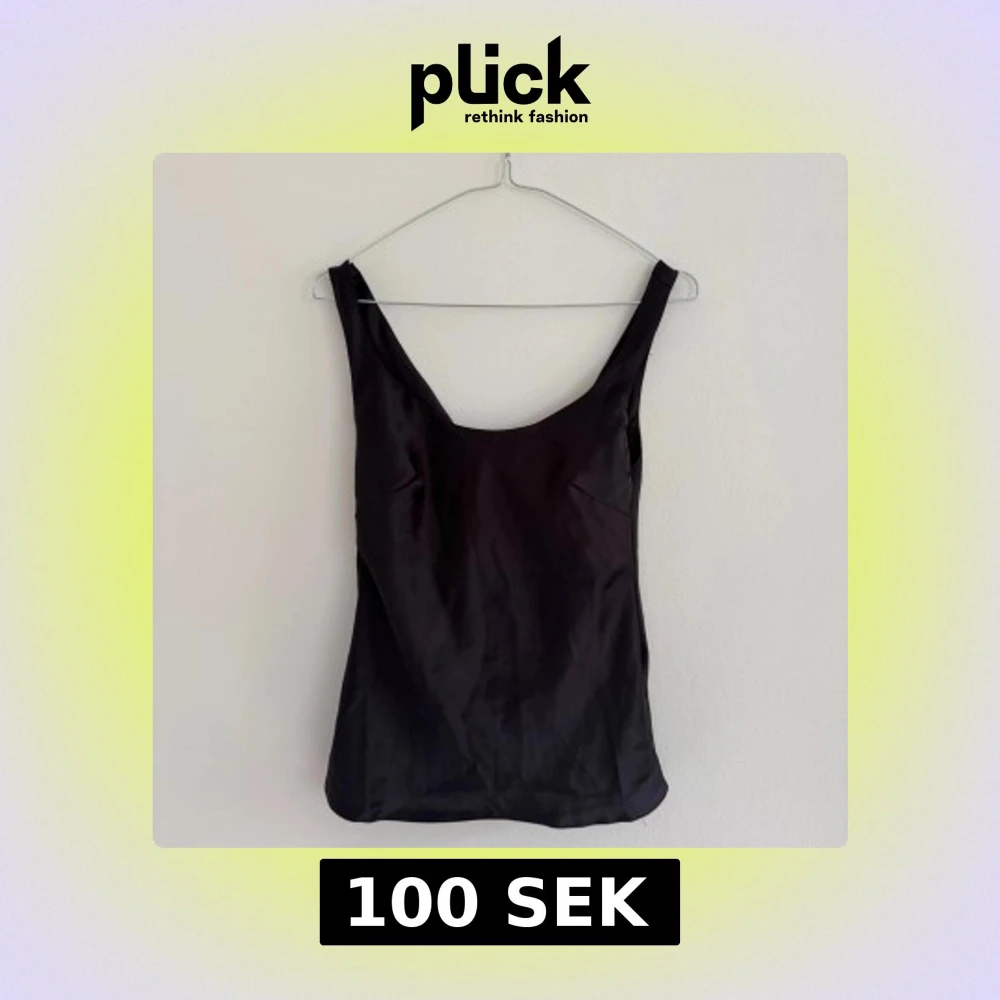 Säljer en stilren svart linnetopp från ASOS DESIGN. Toppen har djup urringning både fram och bak, är ärmlös och har en slät, lätt glansig satin yta. Perfekt att matcha med allt!